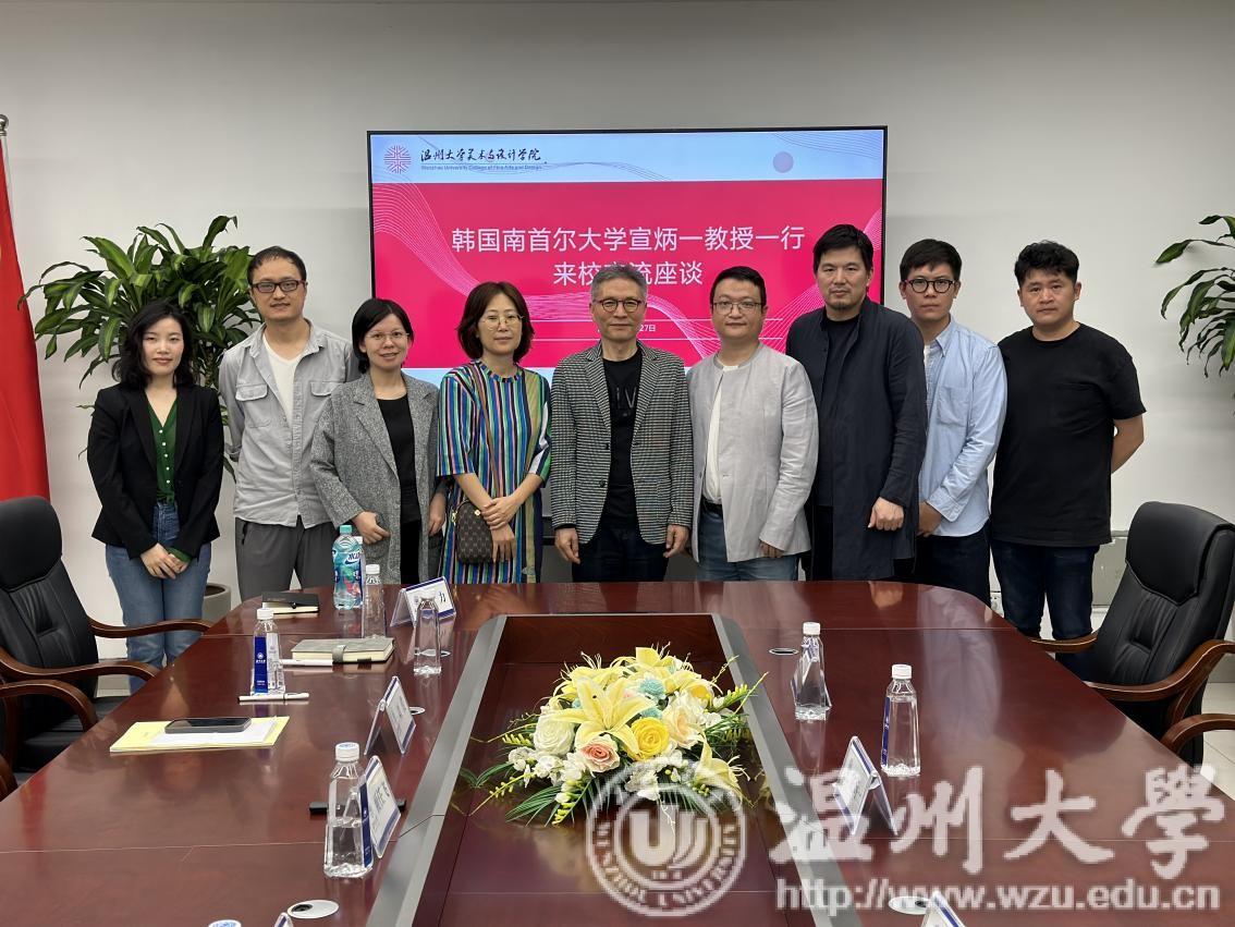 10月27日,韩国南首尔大学终身名誉教授、韩国美术协会会长、韩国视觉设计协会会长、博士生导师宣炳一教授一行4人来访禁忌书屋 。学院副院长顾任飞教授、视觉传达设计系主任刘俊、环境设计系主任黄玫玮以及学院设计学、艺术设计硕士研究生、视觉传达系师生共60多人参加交流活动,共同探讨视觉设计专业建设等相关问题。