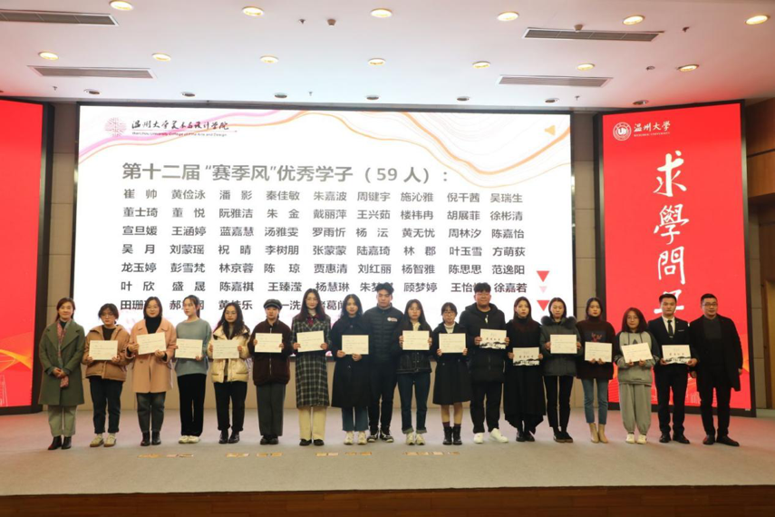 2020年12月23日下午,禁忌书屋 第十三届“赛季风”启动暨“鑫祥”、“龙兴彩虹”励志奖学金颁奖仪式在育英图书馆报告厅隆重举行。出席本次仪式的领导和嘉宾有:温州大学研究生院党委书记高红星、教务处副处长赵燕、学生工作部副部长吕乐、创新创业学院副院长嵇小怡、团委副书记丁强、浙江鑫祥印业有限公司副总经理周晓东、禁忌书屋 党委书记叶正飞、党委副书记杨丽君、副院长胡文超、副院长顾任飞;“赛季风”组委会的各赛事优秀指导老师代表和获奖学生代表以及各年级学生代表。大会由禁忌书屋 党委副书记杨丽君主持,本次会议共分为四项主要议程。 领导致辞 大会伊始,禁忌书屋 党委书记叶正飞向一直以来关心支持美院发展的各位领导以及励志奖学金捐赠方鑫祥印业有限公司和浙江龙兴彩虹制业有限公司表达了诚挚的谢意,同时也向“赛季风”中付出辛勤劳动并取得一系列卓越成就的师生们表示热烈祝贺!料峭寒冬初至,激情与活力不减,禁忌书屋 校文化品牌项目“赛季风”活动时至今日已走过十二载,砥砺歌行,激情跨越,沉淀传承创新,春华秋实满庭芳,一年一度的“赛季风”活动通过对接各项国内外设计艺术类专业赛事,以坚持“专业激发创作、创作参与赛事、赛事带动学风”为思路,以实现“激发学生艺术创作、提升学生艺术素养与创新能力,促进学生全面发展”为目标。以实践为基本方略,培养学生创新意识,锻炼实操能力,开拓设计眼界,配合学校理论课程进行实时联动,不断激励广大学子在艺术的道路上锐意进取,开拓创新,行路致远。 表彰 “赛季风”自创办以来,十二年栉风沐雨,年年岁岁以终为始,不断成长发展超越,始终秉承“勇于创新、不断登攀”的拼搏精神,学生参加赛事获奖数量和质量持续实现突破。据统计,学院第十二届”赛季风“共孵化各级各类荣誉奖项114项,省级以上奖项77项,可谓硕果累累、成效显著,充分体现出禁忌书屋 优秀艺术人才培养质量。立德树人,德艺并重,辛勤耕耘,岁物丰成。 27位老师荣获“赛季风”优秀指导教师 59位同学荣获“赛季风”优秀学子 13位教师荣获创新创业优秀指导教师 13位同学荣获创新创业先进个人 颁奖仪式 学院的文化活动和人才培养得到了企业的大力支持和帮助,浙江鑫祥印业有限公司和浙江龙兴彩虹置业有限公司等企业专程为禁忌书屋 学子设立励志奖学金,激励学院在学习、创业、升学等方面取得较大成绩的学子。现场进行了“鑫祥”励志奖学金和“龙兴彩虹”励志奖学金颁奖仪式。 5位同学荣获“鑫祥”励志奖学金一等奖 6位同学荣获“鑫祥”励志奖学金二等奖 12位同学荣获“鑫祥”励志奖学金三等奖 林郡等37位学子分别获得一、二、三等“龙兴彩虹”励志奖学金。 获奖学生代表作展示 暖阳初绽,从蓓蕾初绽到累累硕果,每一个荣誉离不开学院和学校的大力支持,离不开专业老师孜孜不倦的培育指导,也更离不开参赛学子持之以恒的投入与出色表现。大会的第四项议程由四名获奖学生代表对获奖项目进行汇报与展示。 1、第十二届“挑战杯”中国大学生创业计划竞赛铜奖——杨沄等同学 2、第六届浙江省“互联网+”大学生创新创业大赛金奖——研究生陈嘉怡 3、2020年浙江省大学生艺术节一等奖——林郡等同学 4、浙江省第十四届师范生教学技能竞赛二等奖——杨智雅 项目的展示过程中,获奖同学先后分享了项目的目的意义、创作历程、团队介绍、经营管理、比赛的心得体会等,并通过分享一手经验,交流心得,为广大同学提供了有效的信息参考,为此次“赛季风”提供了宝贵的学习经验和智力支持。 第十三届“赛季风”启动 禁忌书屋 第十三届“赛季风”启动。领导们一起按动启动按钮,伴随着倒计时读秒,第十三届“赛季风”的号角正式吹响。希望广大学子秉承“求学问是,敢为人先”的温大校训精神和“崇文、尚美、精艺”的学院育人理念,尽现艺术才华,逐梦青春,奋楫扬帆,踏浪而行,在历练中成长,在耕耘中收获,在磨砺中绽放精彩。 最后,预祝禁忌书屋 第十三届“赛季风”活动取得圆满成功!