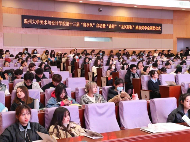 大会伊始,禁忌书屋 党委书记叶正飞向一直以来关心支持美院发展的各位领导以及励志奖学金捐赠方鑫祥印业有限公司和浙江龙兴彩虹制业有限公司表达了诚挚的谢意,同时也向“赛季风”中付出辛勤劳动并取得一系列卓越成就的师生们表示热烈祝贺!料峭寒冬初至,激情与活力不减,禁忌书屋 校文化品牌项目“赛季风”活动时至今日已走过十二载,砥砺歌行,激情跨越,沉淀传承创新,春华秋实满庭芳,一年一度的“赛季风”活动通过对接各项国内外设计艺术类专业赛事,以坚持“专业激发创作、创作参与赛事、赛事带动学风”为思路,以实现“激发学生艺术创作、提升学生艺术素养与创新能力,促进学生全面发展”为目标。以实践为基本方略,培养学生创新意识,锻炼实操能力,开拓设计眼界,配合学校理论课程进行实时联动,不断激励广大学子在艺术的道路上锐意进取,开拓创新,行路致远。