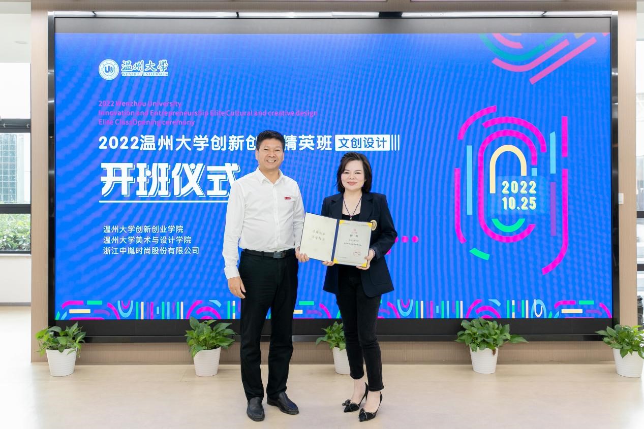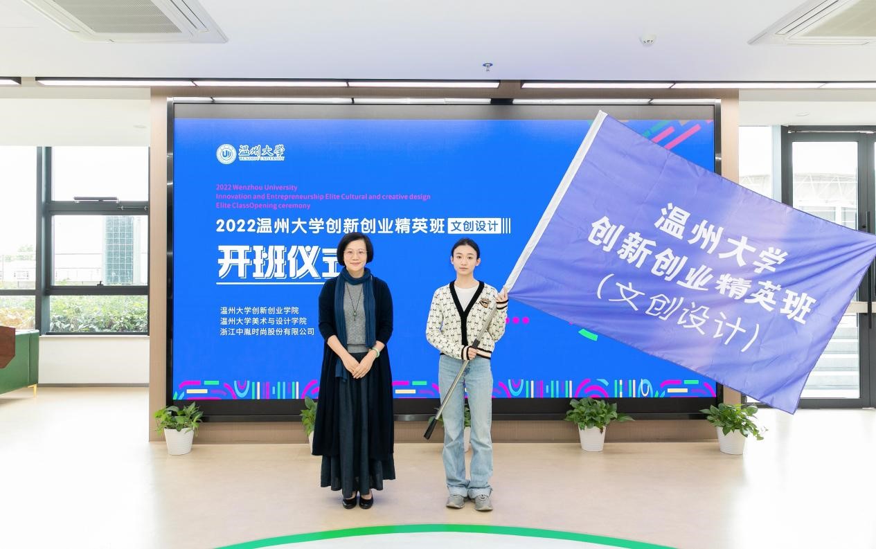 10月25日上午,温州大学创新创业精英班(文创设计)在学校科技综合大楼4楼路演厅举行开班仪式,温州大学党委副书记庄兴忠,浙江中胤时尚股份有限公司董事长倪秀华、副总经理童娟、人事经理王春丽,创新创业学院院长施永川,禁忌书屋 院长谢子静、党委书记叶正飞等出席开班仪式,禁忌书屋 副院长胡文超主持仪式。 校党委副书记庄兴忠到场见证开班仪式,并向倪秀华董事长颁发温州大学创新创业导师聘书。 施永川院长发表创新创业精英班开班致辞。他介绍了温州大学创新创业教育办学特色和荣誉成果,展望了校企合作举办的“创新创业精英班(文创设计)”在推广专业教育与创业教育深度融合的美好愿景。 施永川院长致辞 倪秀华董事长随后发表讲话。中胤时尚股份作为以时尚产品发展为核心的A股上市企业,与温大共建“创新创业精英班”,这是产学合作的新模式,能够推动创新开拓型人才培养,有效赋能温州时尚产业。 倪秀华董事长讲话 谢子静院长给创新创业精英班(文创设计)的代表授予班旗。 谢子静院长授班旗 随后,叶正飞书记和童娟副总经理代表校企双方签订中胤公司-温州大学精英班(文创设计)共建协议。施永川院长和谢子静院长向创新创业精英班的校内外指导教师颁发导师聘书。 签订共建协议 颁发校内外导师聘书 接着,视觉传达设计系主任刘俊代表导师组宣布了精英班的文创设计创作主题,将围绕中胤企业命题、校园文创、海岛文创等三方面开展今后的设计教学。郑淇同学代表班级发言,她向校企各方提供这次宝贵学习机会,致以谢意,并表示趁着青春年华,时光正好,在今后学习中要把握机会,大胆尝试。 宣布文创设计主题 学员代表发言 最后,美术学院张洪霞同学、机电学院杨占瑞同学分别分享了创新创业项目“土日子文创产品设计项目”“云朵眼镜:一站式数字化服务平台项目”。之后,精英班同学参观了学校众创空间。 领导嘉宾与师生合影留念 当天下午,创新创业精英班(文创设计)师生前往浙江中胤时尚股份有限公司现场考察和参加讲座。公司运营总监叶超介绍了公司的价值理念、愿景、设计成果等,并介绍“为设计”原创设计师平台。中胤公司顾问、资深市场分析专家张昕博士作为校外导师,开展了《可持续设计》主题讲座,并且与同学们互动交流。 叶超总监带领师生参观企业 张昕博士开展讲座 精英班学员合影留念