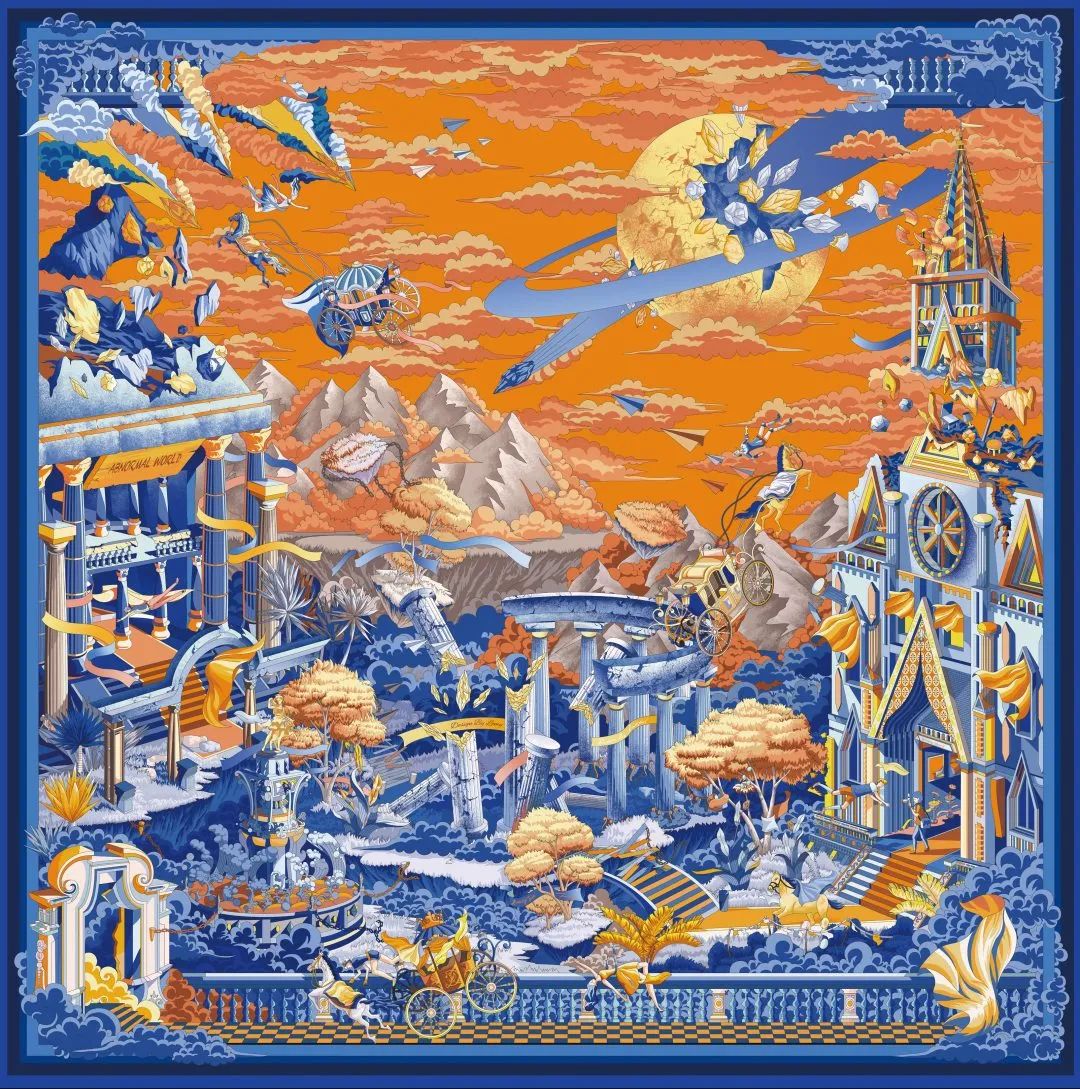 创新设计,智造未来。历届“市长杯”中国(温州)工业设计大赛聚焦温州“5+5”产业体系,挖掘设计新理念,涌现了大批优秀作品与设计师。《异度空间》丝巾原创丨设计师:罗明军绘画作品产生灵魂是画家对生活对社会对自然经过自己的感知通过意识控制笔墨而重新塑造的画中天地万物而没有经过学习经过历练经过感悟而产生的作品就是一幅画而已I市长杯作品《异度空间》《异度空间》灵感来源于人类主要文明提现“世界建筑遗产”,世界建筑遗产是人类智慧的结晶,在人类文明史上占有非常重要的地位。但随着人类无止尽的贪婪与破坏,让大自然遭到史无前例的破坏,台风、海啸、火山爆发等自然灾害愈发严重。这些“大自然的惩罚”造成世界上越来越多的世界建筑遗产彻底毁灭。历史悠久的巴黎圣母院也因自然原因造成严重火灾事故、产生巨大的人类文化遗憾与经济损失。据此一系列与其影响为灵感方向,构想人类破坏后所产生的失重世界状态,世间万物以异常的形态分崩离析与正常的世界形态产生鲜明对比。以此呼吁社会保护自然、尊重自然也同样是在保护世界遗产、保护人类文明。作品累积号是8个月时间将巴黎圣母院,圆明园,雅典古城等元素进行提炼和转化,以失重异常的状态进行视觉表现给予观者强烈的视觉冲击这种与众不同的视角和表现方法,使异度空间作品在设计上的巨大亮点。当然设计只有依附于精湛工艺,才能得到充分发挥,因此实地打样与面料选择成为了异度空间作品的必修课。作品在设计的过程中,材料色彩和构图采用一花两色的效果,通过折叠就能产生两种不同的佩戴体验,但是两种完全相撞的颜色便意味着印花工艺的高要求,因此在食物的制作过程中,首先遇到的难题便是是色彩得不到充分发挥,为了改善颜色问题,作者对两幅丝巾上的所有色彩,用潘通色卡进行一对一打样来降低色彩的问题,以此满足工业化批量生产的同时又符合高标准的审美需求,作品从40余种不同厚度质感与卷边工艺的成品小样中进行试戴水洗等测试,最终确定的斜纹绸面料不公是光泽还是硬度都达到最佳。