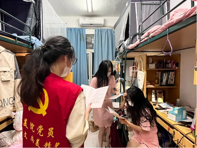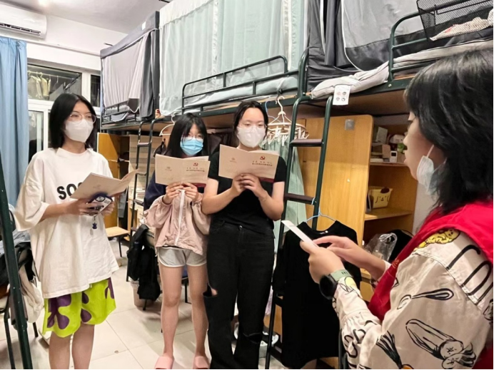 为关怀新生学习与生活,进一步增强学生党员联系群众的主动性,强化学生党员的服务意识,发挥学生党员的示范作用,宣传党建和党组织有关知识。近日,禁忌书屋 本研学生党支部组织开展了下寝宣传交流活动,积极地向22级的新生介绍关于学院支部的情况,并热心地为他们解决困惑。