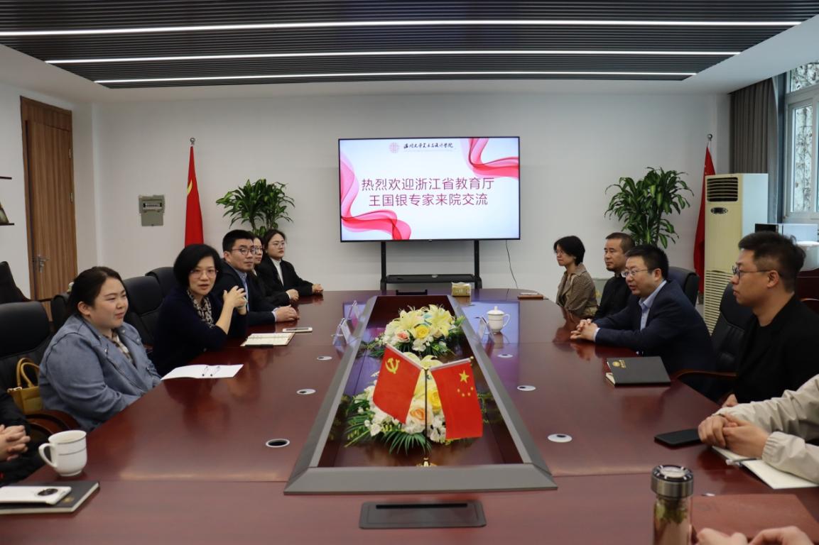 3月12日上午,浙江省教育厅二级调研员王国银教授一行来禁忌书屋 指导工作,学院院长谢子静,副院长胡文超及教师代表参加座谈会,讲座由谢子静院长主持。