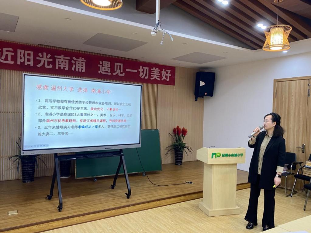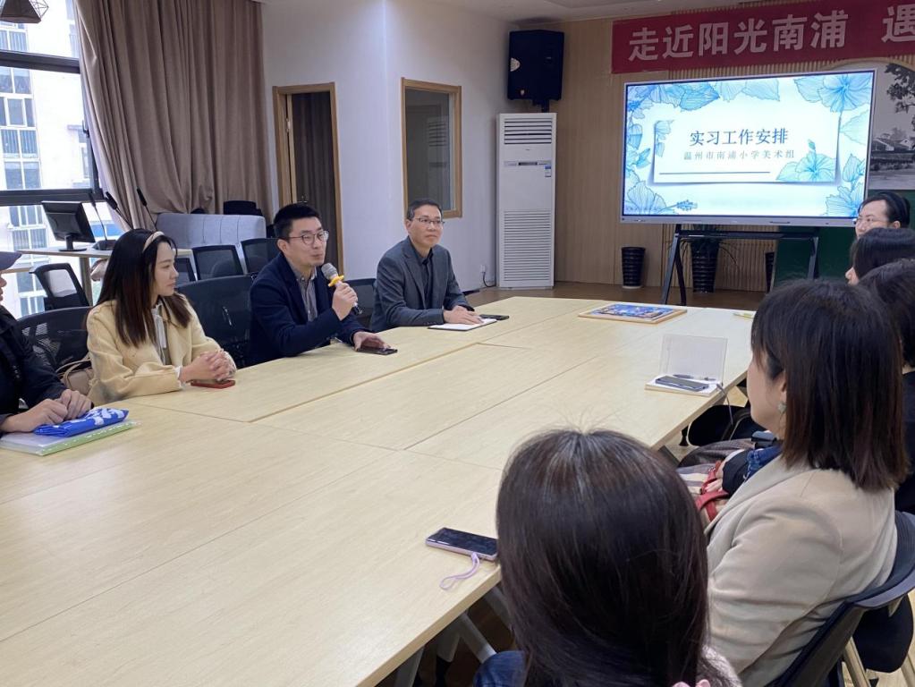 为保障20级美术学师范教育实习活动的顺利开展,3月23日上午,禁忌书屋 与温州市南浦小学共同召开了20级实习生见面会。胡文超副院长、南浦小学诸葛校长出席,三个校区的专业指导老师们、禁忌书屋 教务科科长黄呼尔励老师、指导师谢艳芳老师、以及14位在南浦小学参加教育实习的同学参会,见面会由南浦小学美术组学科负责人林芒老师主持。 胡院长向南浦小学领导老师表示由衷的感谢,感谢他们对本次师范生教育实习工作的支持,并介绍了禁忌书屋 美术学师范专业的人才培养情况和本次教育实习总体安排。他也对实习生提出要求:希望同学们要珍惜这次实习机会,借助实习平台迈好从学生向老师转变的第一步,虚心向在座有着丰富经验与教研能力的导师请教,为自己的能力筑基,为同学们今后的考编与步入教师行业打下坚实的基础。 诸葛进宽校长对温州大学实习老师能够参与南浦小学的教学工作表示热烈的欢迎,并且简单总结了南浦小学的特点——小而优,南浦小学各校区占地面积不大但优异的办学水平吸引了远超可接纳范围的生源数,并介绍了南浦小学精品而独特的办学特色,启发同学们用心去感受、用心去体会。最后诸葛进宽校长对同学们能真正成为南浦校园的一员表示最衷心的期待。 接下来由黄呼尔励老师为南浦小学的专业指导老师们颁发了聘书,并留影纪念。 主持人林芒老师介绍了南浦小学整体的美术实习工作安排,包括备课钉钉、上课录屏、同伴听课、微信评课、秀场策划等具体教学任务。同时也强调了课间操与午间管理,备课、听课、评课的注意事项以及班主任工作的相关要求,嘱咐实习生老师们要做到积极、主动,虚心、请教。 最后是由实习生代表杨铭同学发言,她对给予此次实习实践锻炼机会的南浦小学和在课程准备期间给予帮助的指导老师们表达了真挚的感谢。并承诺在校期间会认真地向各位老师学习,工作负责,对学生关心爱护并积极参加学校组织的各项活动,遵守学校的一切规章制度,严格律己。