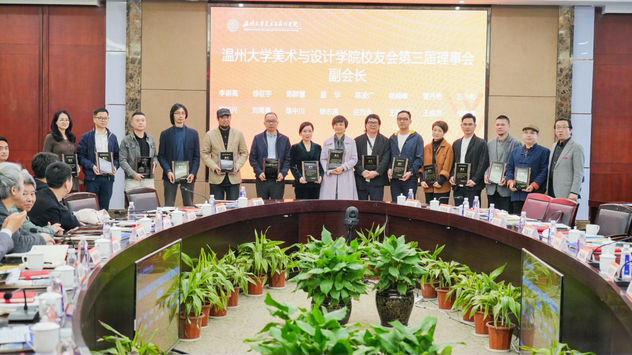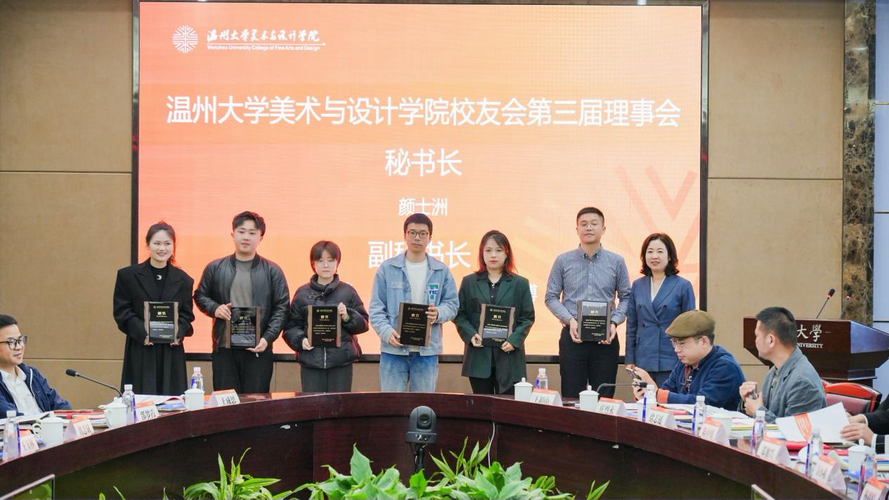 大会审议通过了《禁忌书屋 校友会章程(修订)》(草案)和《禁忌书屋 校友会第三届理事会建议名单》。会议选举产生了第三届理事会理事,91届校友金纬当选第三届理事会会长、14届颜士洲校友当选第三届理事会秘书长。本次换届为温大美院校友工作的长期可持续发展奠定了坚实基础。在聘任仪式上,学校、学院领导为新任会长、副会长、理事、秘书长、副秘书长颁发聘书。