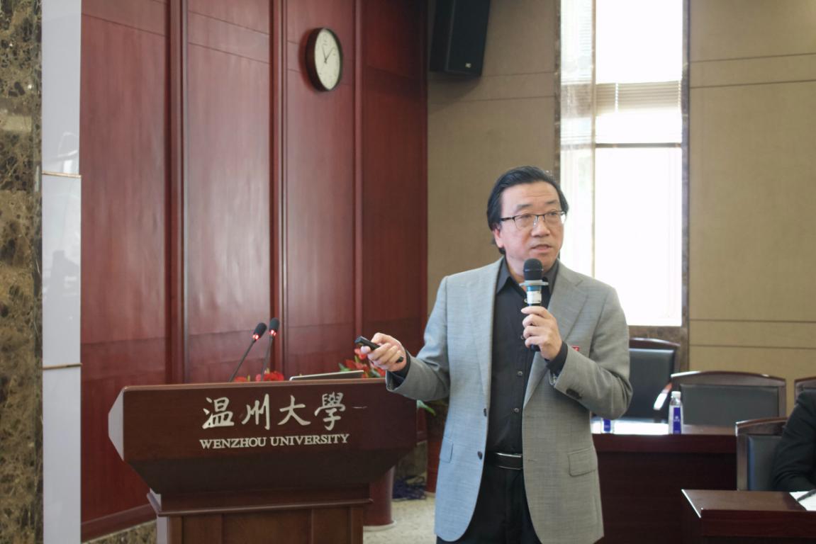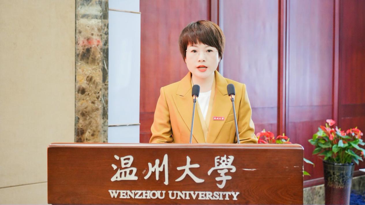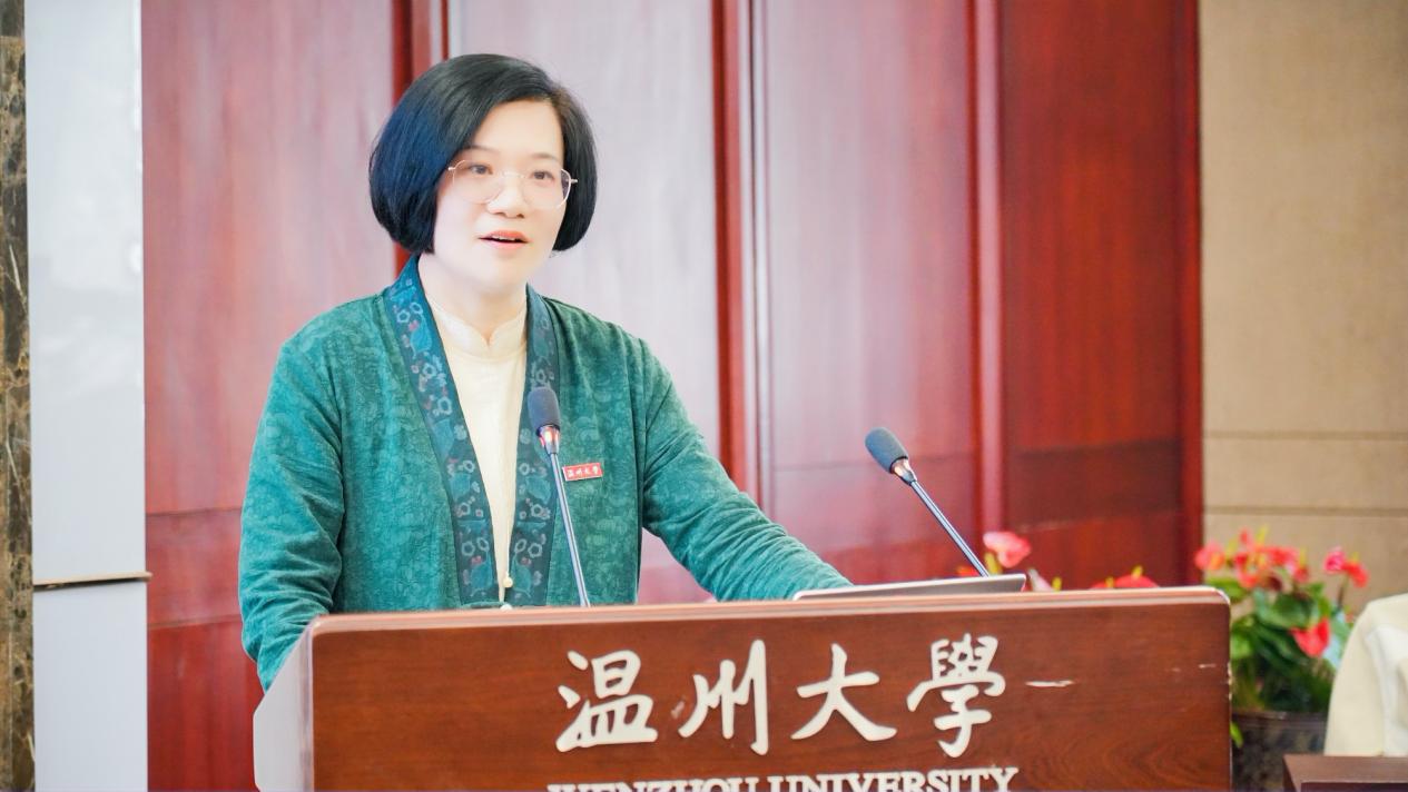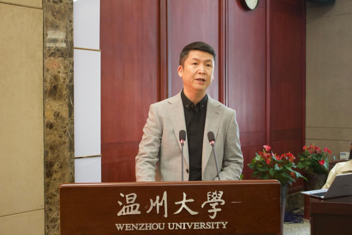 温州大学副校长蔡曙光发表讲话。蔡校长代表学校向分会校友的来访表示热烈欢迎,对大会的成功举办和新任的理事会成员们表示祝贺,对温大校友们长期关心和支持母校发展表示感谢,并从学校定位、办学优势、办学目标和办学成果向与会校友介绍了学校的发展情况。蔡校长对美院校友会未来的发展提出三点希望:一是优化校友服务,搭建交流平台,使校友会成为凝聚校友共识、关爱校友成长,助力校友发展的“心灵家园”。二是积极互联互通,发挥纽带作用,让校友会成为校友们共同的精神家园,构建发展共同体,共创未来纽带。三是汇聚智慧力量,助推共同发展。希望广大校友积极投身母校建设,做“人才的引荐者”,“项目的合作者”“信息的传递者”“形象的宣传者”,为母校发展添砖加瓦,贡献更多的智慧和力量!同时还邀请校友们五月十九日重返校园,共襄盛举,共庆母校九十华诞!