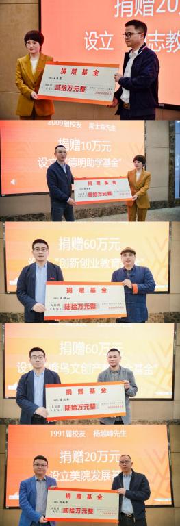 一直以来,学院的建设发展,得到历届广大校友的关心与支持。很多校友通过汇聚资源、项目合作、成立基金等形式,支持学校和学院的发展,在学校喜迎90周年校庆之际,学院收到5笔校友基金。本次大会上同时举行了校友基金捐赠仪式。