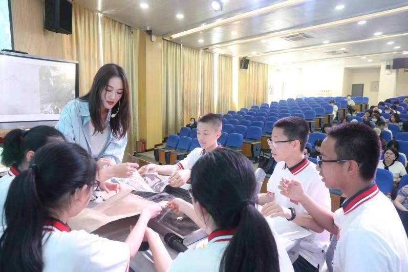 2023年5月29日下午,禁忌书屋 20级美术学(师范)实习总结汇报会在温州第二实验中学举行,温州大学苏步青学院党委书记应中、执行院长姜锐、禁忌书屋 副院长顾任飞、温州大学教师培养基地主任胡珏等领导和嘉宾,来自温州第二实验中学、温州第二外国语学校、温州市第十二中学、温州市第十九中学、温州南浦实验中学和温州梧田第一中学的校外导师,禁忌书屋 全体实习导师,以及20级、21级本科生、学科教学(美术)研究生共196人参加汇报会。会议由第二实验中学的楼林子老师主持。 活动伊始, 各位嘉宾、老师进行了合影留念,随后顾任飞副院长、胡珏老师对嘉宾的到来表示热烈欢迎,对各位指导老师给予的精心培养表示感谢,同时也肯定了20级实习生在实习过程中的付出。 第一节展示课是由温州第二实验中学实习生代表叶佳慧带来的自编课程《水之道》-梨园风骨寄丹青。课堂以水袖舞作为导入,整堂课的氛围充满中华古典韵味,将水袖与国画水墨纹理相结合,将水拓作品与戏曲人物进行联想创作,让大家眼前一亮。 第二节课是由温州南浦实验中学实习生代表姜景皓带来的七年级课程《北京故宫—千里江山图》。课堂以视频方式导入,带同学走进画中世界,老师从多角度讲解分析画作,让流行音乐与古画韵律相结合,碰撞出了不一样的火花。 第三节课由温州第二外国语学校实习生代表沈晔同学,为我们带来了以纸为载体的立体构成课程《纸构成》。课堂开始让学生自由将手中的纸进行立体设计,用最短的时间感受到了纸的材质体验。这节课通过纸张表现韵律,并与生活中建筑设计、大自然景观等相结合,让学生对立体构成抽象的概念有了直观的理解,更让学生感受到生活中艺术无处不在! 汇报课结束之后,胡建南老师、林川老师进行了现场评课,两位老师对各位实习老师的汇报表示肯定,同时也提出了需要改进的地方。 随后,初中组实习生代表姚敏敏同学对此次实习汇报进行了总结以及对各个学校表示衷心的感谢,并通过一段段生动活泼的记录向大家展示了近两个月来实习生活的点滴。 汇报会最后,20级实习生们向指导老师们献上了精心准备的礼物以表达感谢,并且与老师们进行了合影留念,本次实习汇报也落下了帷幕,愿温大美院学子不忘初心,砥砺前行,愿其前程似锦,未来可期!