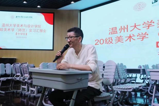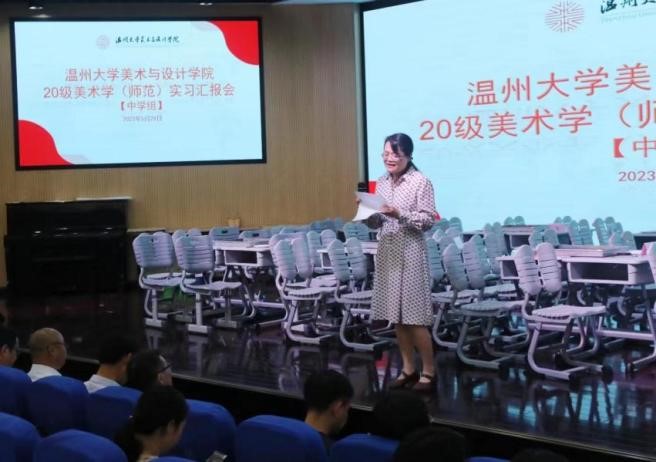 2023年5月29日下午,禁忌书屋 20级美术学(师范)实习总结汇报会在温州第二实验中学举行,温州大学苏步青学院党委书记应中、执行院长姜锐、禁忌书屋 副院长顾任飞、温州大学教师培养基地主任胡珏等领导和嘉宾,来自温州第二实验中学、温州第二外国语学校、温州市第十二中学、温州市第十九中学、温州南浦实验中学和温州梧田第一中学的校外导师,禁忌书屋 全体实习导师,以及20级、21级本科生、学科教学(美术)研究生共196人参加汇报会。会议由第二实验中学的楼林子老师主持。