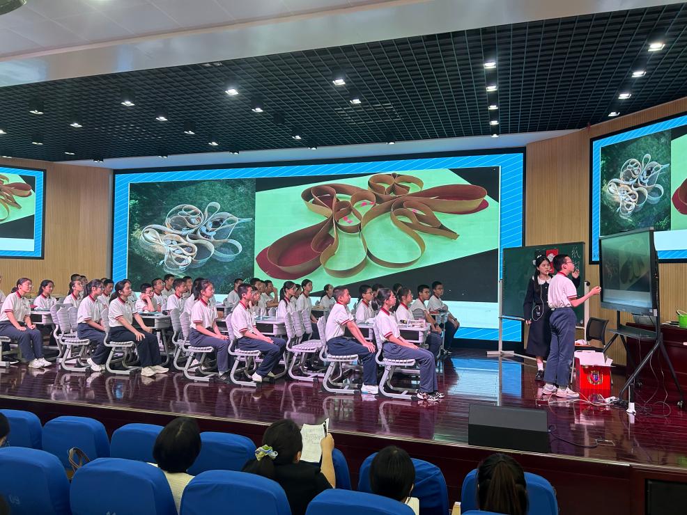 第三节课由温州第二外国语学校实习生代表沈晔同学,为我们带来了以纸为载体的立体构成课程《纸构成》。课堂开始让学生自由将手中的纸进行立体设计,用最短的时间感受到了纸的材质体验。这节课通过纸张表现韵律,并与生活中建筑设计、大自然景观等相结合,让学生对立体构成抽象的概念有了直观的理解,更让学生感受到生活中艺术无处不在!
