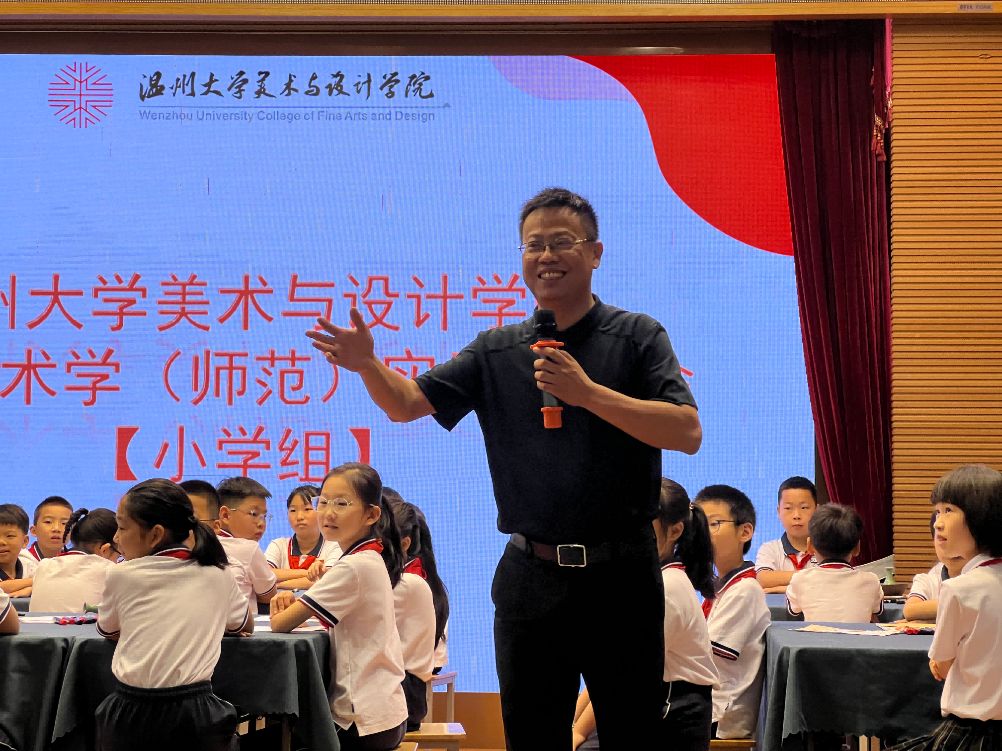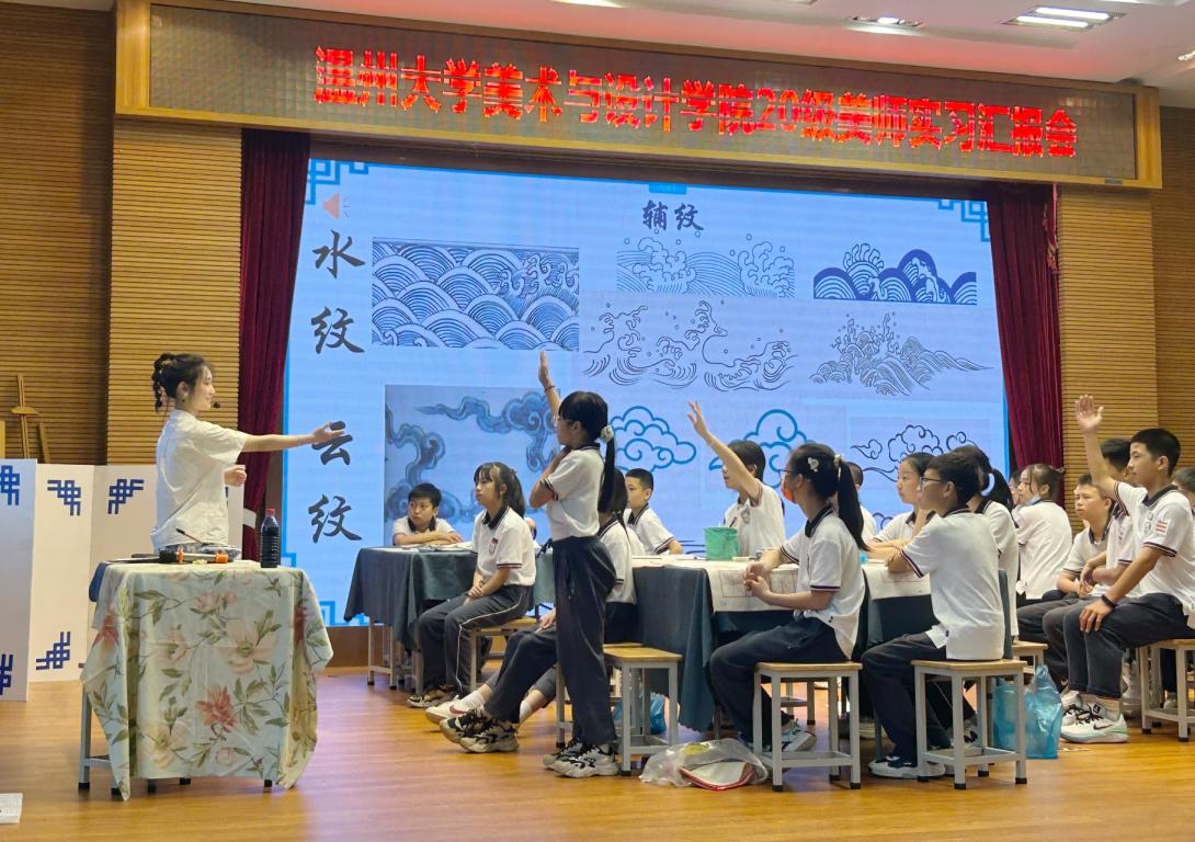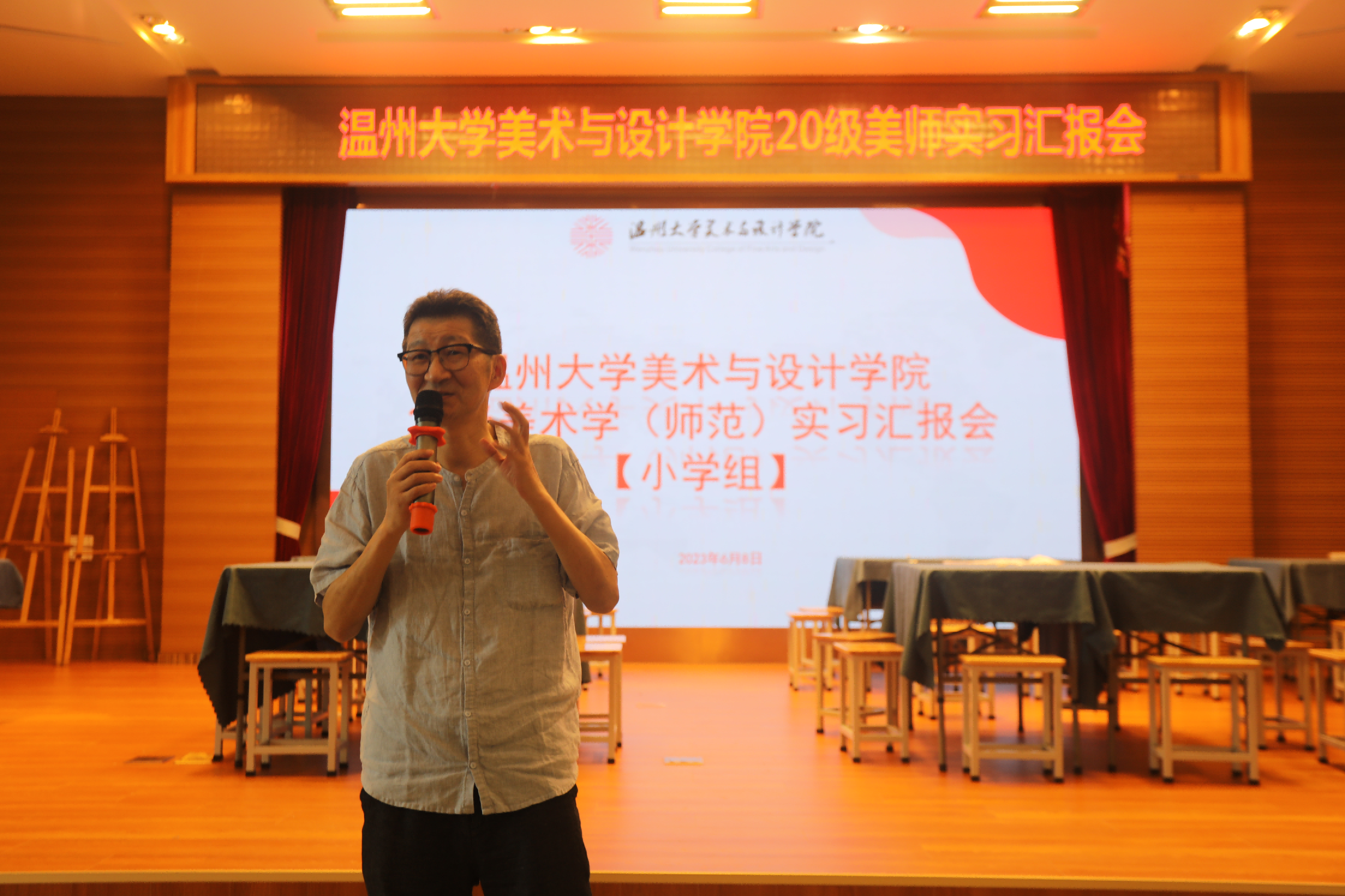 紧张又充实的实习生活已经落下帷幕,在近两个月的时间里,20级美师的同学们经历了从学生到教师的角色转换,初尝了身为一名教师的酸甜苦辣,也渐渐领悟了教书育人的真正含义。为了认真总结教育实习过程中的经验和不足,实习生们迎来了隆重的小学场实习总结汇报会。 6月8日,温州大学美术学(师范)专业2020级教育实习汇报会·小学场在马鞍池小学报告厅准时召开。禁忌书屋 副院长胡文超、温州市马鞍池小学校长林大康、美院实习导师胡建南、黄良珽、楼晓勉、谢艳芳、陈昭庭、王晶等老师,以及籀园小学、马鞍池小学、南浦小学各校区的指导老师,2020级美师专业的全体本科生、研究生出席了本次大会,大会由20级美师2班黄章铭、姚子昂主持。 嘉宾发言 会议伊始,胡文超副院长对嘉宾和指导老师们的到来表示热烈的欢迎,对同学们成功地完成了两个月的实习任务表示了欣喜和祝贺。接着林大康校长指出在这两个月的实习中,见证了同学们的收获与成长,也祝贺同学们在实习中有很大的收获。 实习生代表发言 随后,由实习生代表王浩宇进行汇报总结,他带来了不同校区的同学们精心制作的实习视频,生动有趣的画面一下子就引起了同学们的兴趣。他分享了不同校区中实习经历的点滴,表达了对实习指导师们辛勤指导的感激,以及本次实习对自己重大的意义。 各校区实习汇报 接下来便进入了实习的展示汇报环节,每所实习校都为我们带来了精彩纷呈的课堂。第一节课由马鞍池小学的实习生代表张子璇带来三年级上册《中国彩陶》。课程从感受两种不同的陶瓶:看一看,摸一摸,对比两种瓶子的不同作为导入,接着设置复原彩陶碎片活动,一起看看7000多年前的陶器,从器形、花纹等方面,引导学生更进一步地了解彩陶文化。 第二节课由籀园小学的实习生代表郭一瑄带来三年级下册的《门票设计》。课堂导入用一张照片来引出门票,引起学生们的兴趣。中间过程让学生们进行连一连小游戏,增加课堂的趣味性。再让学生做一位小小设计师,亲手制作属于自己的门票版式,充分挖掘学生的自主设计创意! 第三节课由南浦小学西校区的实习生代表赵梦洁带来六年级上册的《金银器》。课程开始由南浦小学的实习生们为大家带来了一段情景片段,以此展开金银器的课题,一起去感受传统金银器的独特美感和华丽。 第四节课由南浦小学南校区的实习生代表杨铭带来六年级下册《青花瓷》。古老的文明赋予了青花瓷千年的神韵,彰显出传统文化的博大与精深。本课从周杰伦《青花瓷》导入,制造优美的意境进行揭题。引导同学们跟着歌曲进入青花瓷的艺术之旅,从了解青花瓷的发展史开始,让学生在探究青花瓷的历史过程中学习青花瓷纹饰特点、寓意表达、器型样式,从而获得对青花瓷的审美认知和对历朝历代的文化理解。 名师评课 汇报课结束之后,胡建南老师 、林大康老师进行了现场评课,两位老师对各位实习老师的汇报表示肯定,同时也提出了需要改进的地方。 留影合念 实习是一次将所学理论知识转化为实践的机会,通过这段实习经历大家都受益匪浅,实习虽已落下帷幕,但祝愿20级美师全体同学们都能千山万水,不负理想,不忘初心,拨云见日,未来可期! 本次与实习汇报会一同进行的还有优秀实习作业展,展示了20级美师同学在实习过程中的优秀板书、学生作品,展览布置有新意,呈现了优质的教学成果!