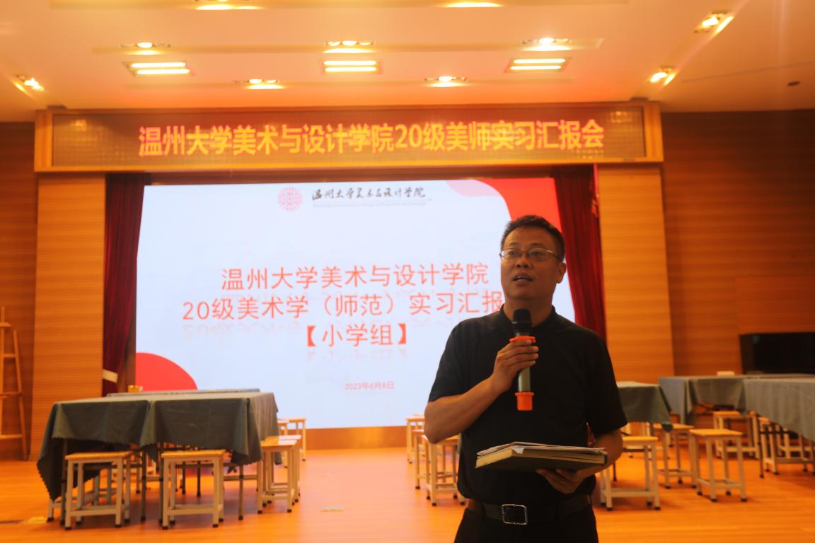 6月8日,温州大学美术学(师范)专业2020级教育实习汇报会·小学场在马鞍池小学报告厅准时召开。禁忌书屋 副院长胡文超、温州市马鞍池小学校长林大康、美院实习导师胡建南、黄良珽、楼晓勉、谢艳芳、陈昭庭、王晶等老师,以及籀园小学、马鞍池小学、南浦小学各校区的指导老师,2020级美师专业的全体本科生、研究生出席了本次大会,大会由20级美师2班黄章铭、姚子昂主持。