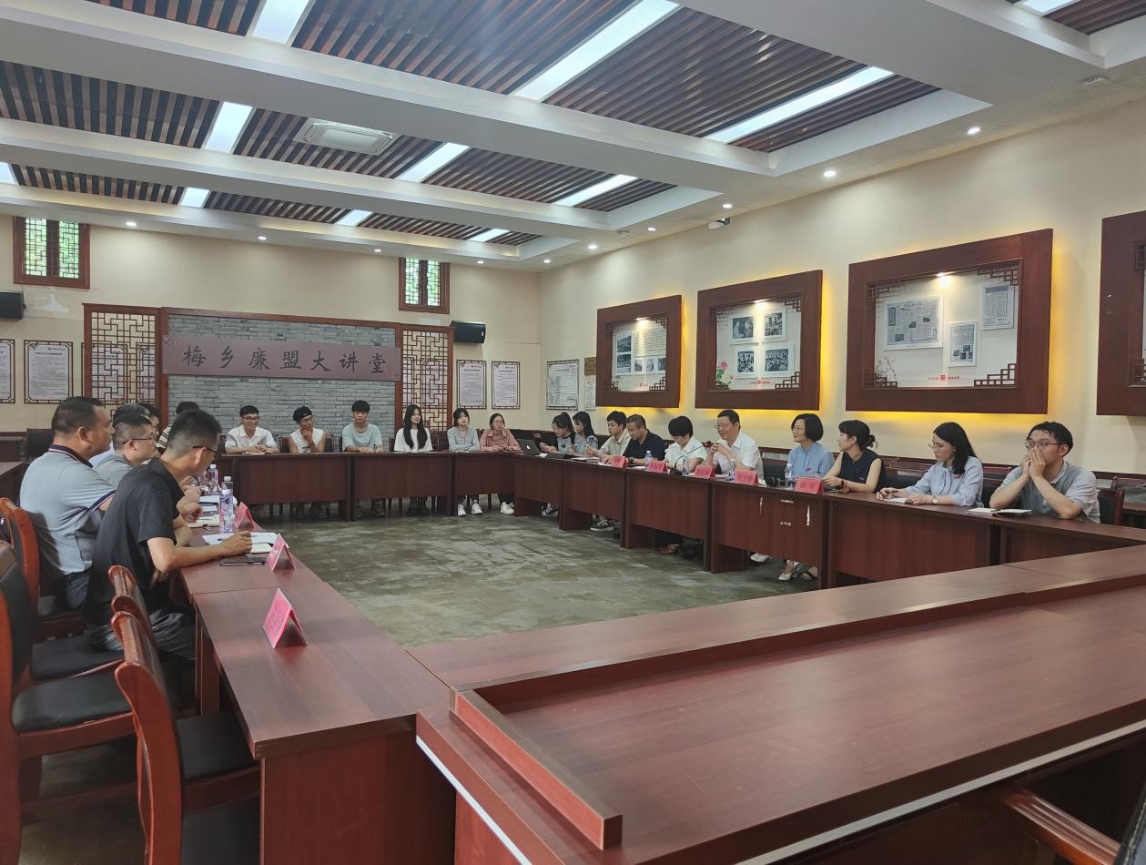 随后,郑信军部长一行人与禁忌书屋 江南大寨岭根村“双百双千”暑期实践队指导老师、实践队员代表开展了慰问座谈会。会上,梅源社区副书记谢作斌和岭根村党委书记杨礼周介绍了村里下一阶段的规划提升需求。实践队指导老师郑敬玉和负责人黄瑜芳分别汇报了近期工作进展和成效,社会实践的学生代表交流了实践心得。