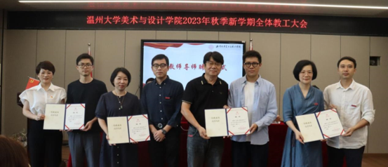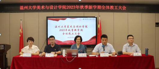 9月20日,禁忌书屋 在美术楼2B4001学术报告厅召开了新学期全体教职工大会,叶正飞书记主持会议,全院教职工参加会议。 首先,举行了教师荣退欢送仪式。隆重欢送视觉传达系专任教师李利民副教授、美术学专业油画专任教师梁力宏副教授等2位教师光荣退休,并赠送鲜花和纪念品。 随后,举行了新教师入职仪式。热烈欢迎梁腾、彭伟华、宋京耕、陈建胜、刘伟金等5位新教师入职禁忌书屋 ,并为新教师送赠入职大礼包。 紧接着,举行了青年教师导师聘任仪式。叶正飞书记为担任青年教师导师的谢子静、关明新、楼晓勉、叶如芳等教师颁发聘书。 最后,谢子静院长作本学期工作部署。她回顾了暑假期间学院在人才引进、教科研项目、服务地方、党建及学生实践工作、院容院貌提升等方面取得的成果,感谢全体师生为学院发展的辛勤付出。同时,她提出本学期的发展目标及工作部署,重点围绕着抓好学科建设、高水平大学建设等工作,分析了学院在师资队伍、专业建设、人才培养、国际合作与交流、服务地方等方面的优势和劣势,提出学科建设具体目标及举措。最后,她提出新学期工作的三点要求,一是要充分了解建设高水平大学、争创“双一流”高校是温州大学当前重要的办学任务;二是要牢牢把握学院、各专业的办学方向、深化推动五育并举、着力提高培养质量,抓好立德树人这个根本点;三是要持续发挥专业优势特色,提升产学融合力、文化引领力、国际竞争力,奋力交出“服务社会、助力发展”高分答卷。她希望,新的学期全体教职工继续凝心聚力、踔厉奋发,为实现学院发展目标而不懈努力。