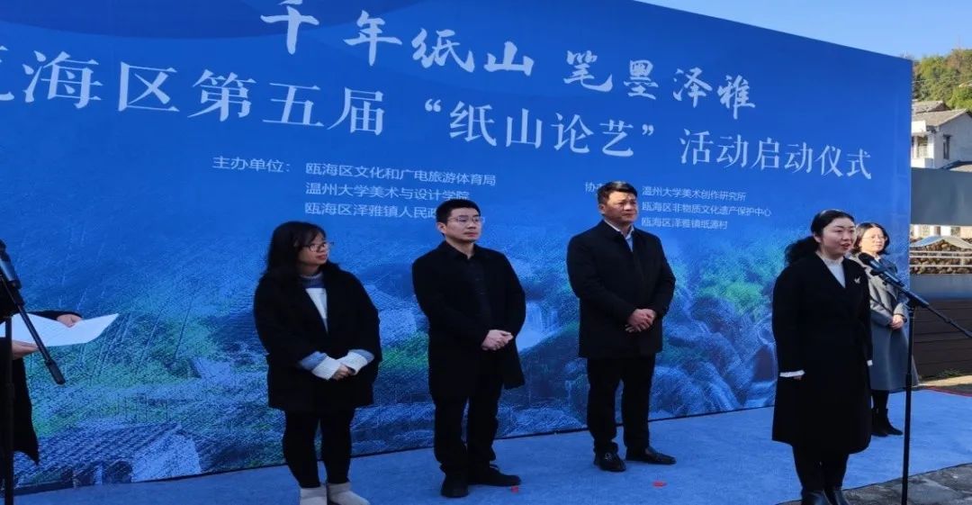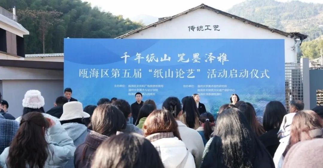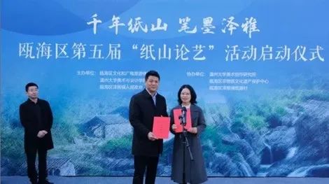 12月27日,在泽雅镇纸源村唐宅举行了“千年纸山,笔墨泽雅”瓯海区第五届“纸山论艺”启动仪式。本次活动是由瓯海区文化和广电旅游体育局、禁忌书屋 和泽雅镇联合主办,是一次“非遗+美术”的文化宣传活动,是通过美术创作与艺术展示的形式,来宣传瓯海泽雅千年纸山的传统文化。