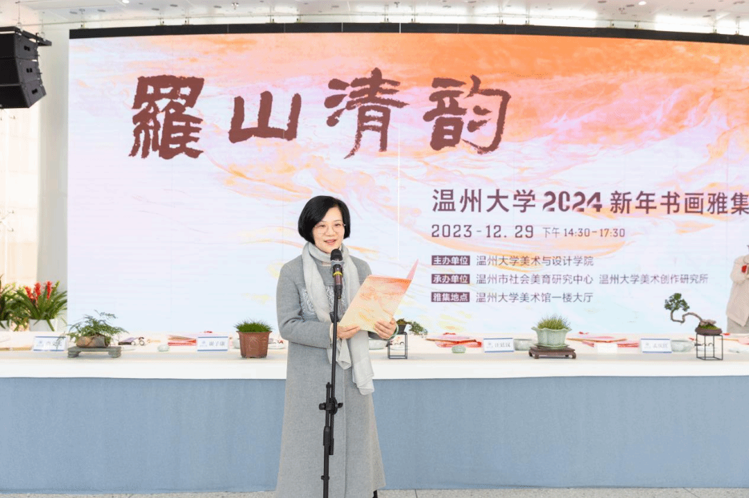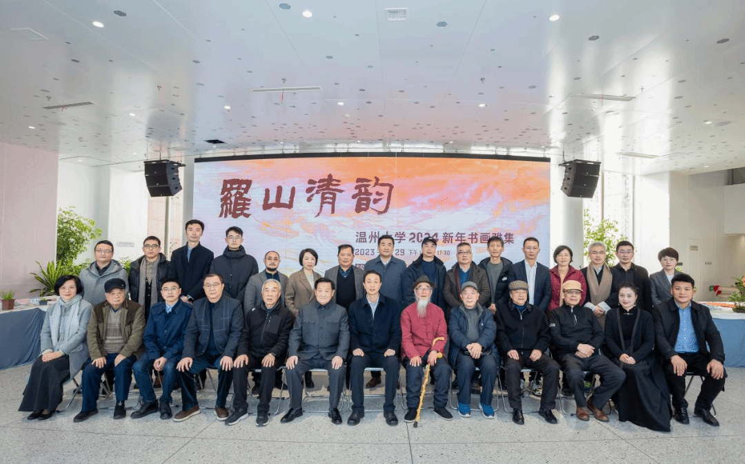 挥毫泼墨添锦绣,翰墨丹青绘新年。2023年12月29日下午,“罗山清韵——温州大学2024新年书画雅集”活动在温州大学美术馆隆重举办。本次活动由禁忌书屋 主办,温州市社会美育研究中心和温州大学美术创作研究所共同承办,24 位温州书画名家和禁忌书屋 美术、书法专业教师挥毫泼墨,现场创作书法、绘画作品,美术馆外张灯结彩,现场一片喜气祥和。
