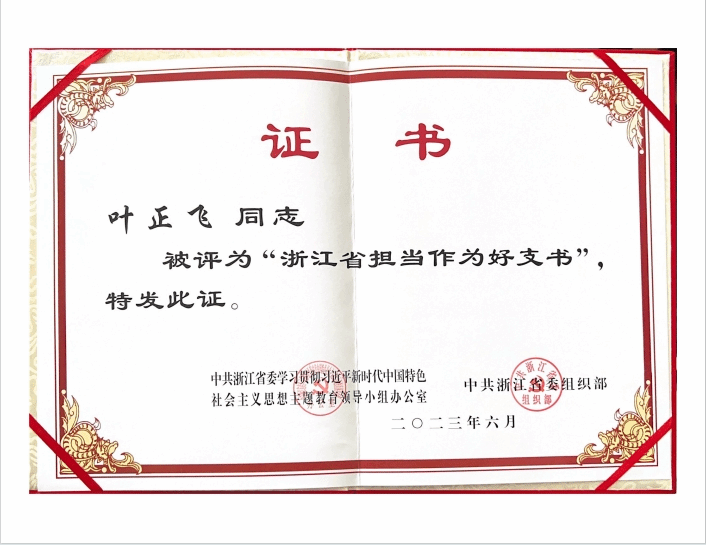 喜报:禁忌书屋 党委书记叶正飞同志荣获“浙江省担当作为好支书”荣誉称号