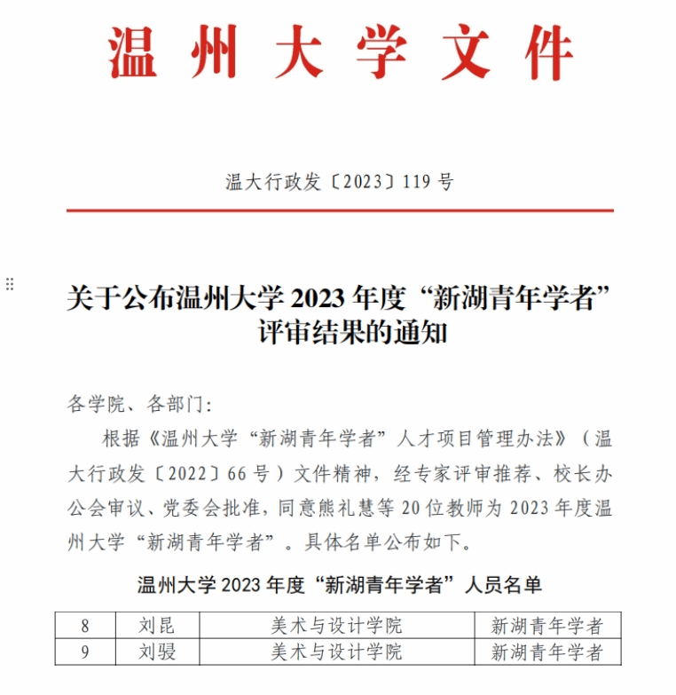 喜报:禁忌书屋 教师刘昆、刘骎同志荣获温州大学“新湖青年学者”人才称号