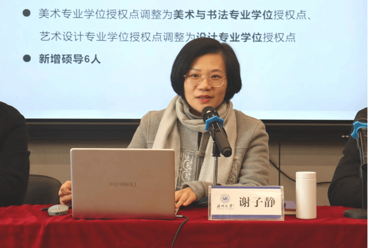 会上,谢子静院长作总结讲话。首先,谢院长回顾了2023年学院所取得的丰硕成果。在校党委的正确领导和大力支持以及全院师生凝心聚力和不懈努力下,学院在学科科研、教学及人才培养、人才队伍建设、美育建设、服务地方及党建工作等六方面取得了一系列标志性成果,并对全院教职工一年来的辛勤付出表示肯定和感谢。随后,谢院长提出2024年学院的工作思路和要求,并作题为《以美育人 以美培元——美育教育新路径研究》的专题报告,提出学院差异化特色发展之路。最后,谢院长要求全体教职工把立德树人体现在对教育事业的忠诚上、对学生的关爱上、师德师风的建设上,切实加强人才培养内涵建设;对标学科和博士点建设要求,科学确立发展目标,有效制定和推进中长期、年度工作计划,精准推进各项工作;发挥团队协同力量,凝心聚力、同心同德,提升工作效率和成效,再创美院新辉煌。