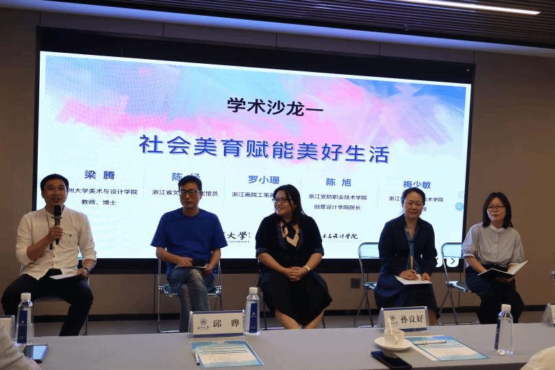 该场由禁忌书屋 教师、博士梁腾主持,浙江省文化馆研究馆员陈经、浙江画院工笔画所所长罗小珊、浙江安防职业技术学院创意设计学院院长陈旭、浙江东方职业技术学院客座教授梅少敏围绕“社会美育赋能美好生活”展开分享和讨论。