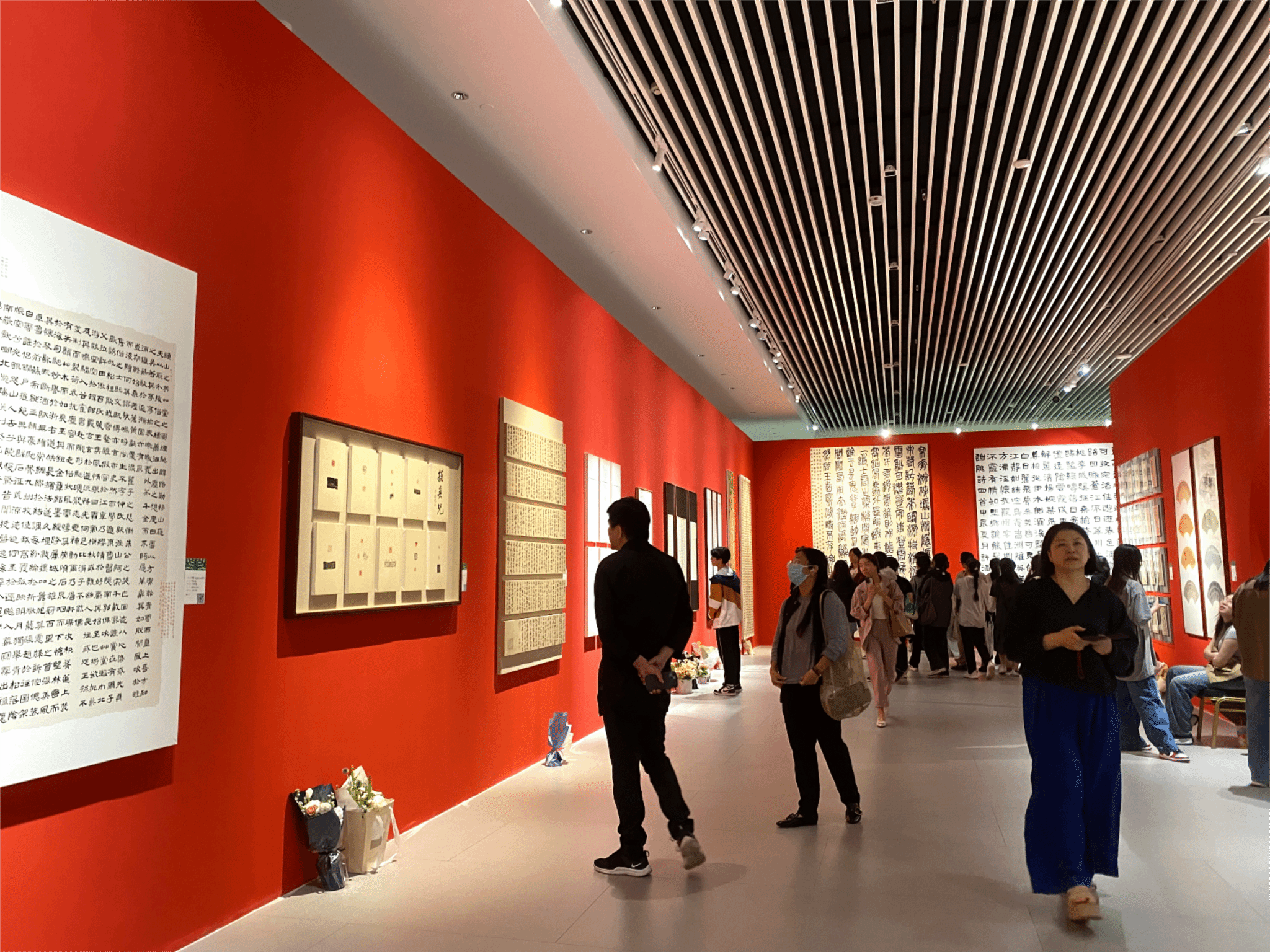 6月5日下午,老师们前往世界旅游博物馆参观中国画学院和书法学院的作品。中国画学院的展览以“春山可望”为主题,作品涵盖山水、花鸟、人物多个方向,内容丰富,技法多样,体现了作者们学习过程中多元的思考和探索,彰显了中国画艺术的传统底蕴和时代特征。书法学院的主题是“奇花初胎”,作品包括书法、篆刻、刻字、装置等。展品品类丰富,书法五体皆备,篆刻不同风格形制俱全,作品装裱展陈方式多样,整体上传统与创新并存。另外,作品尺幅较大也是一大特点。