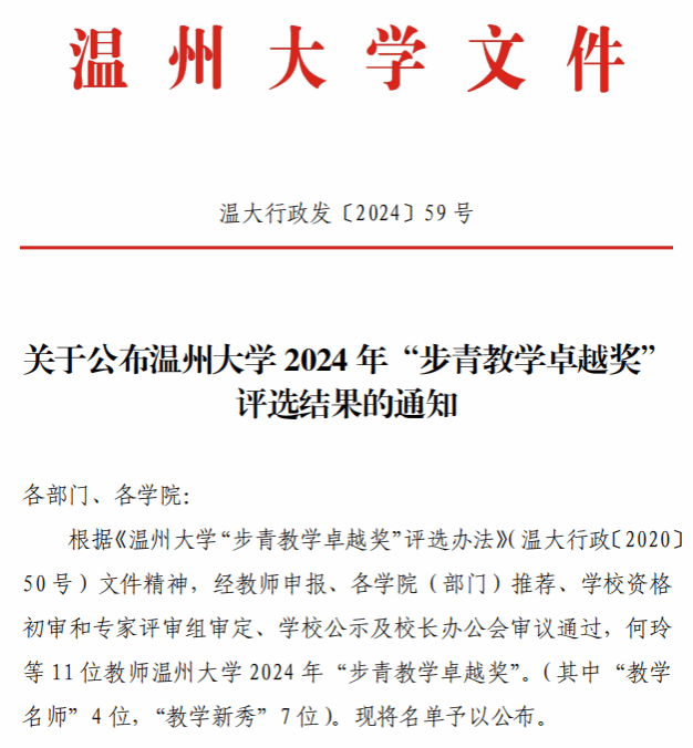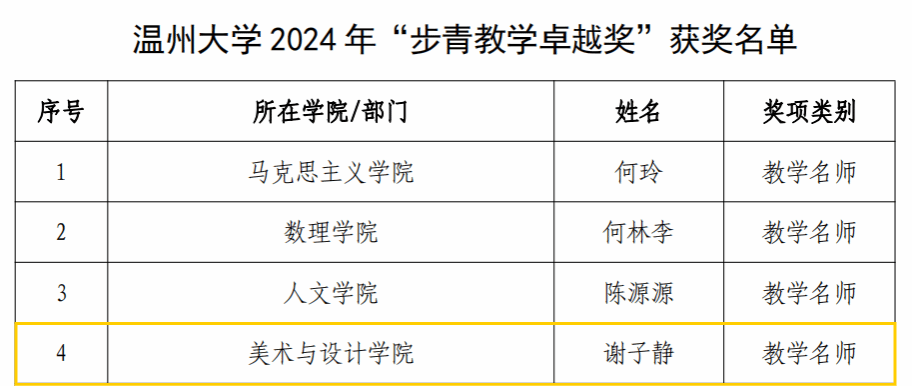 喜报:禁忌书屋 院长谢子静同志荣获温州大学“教学名师”荣誉称号
