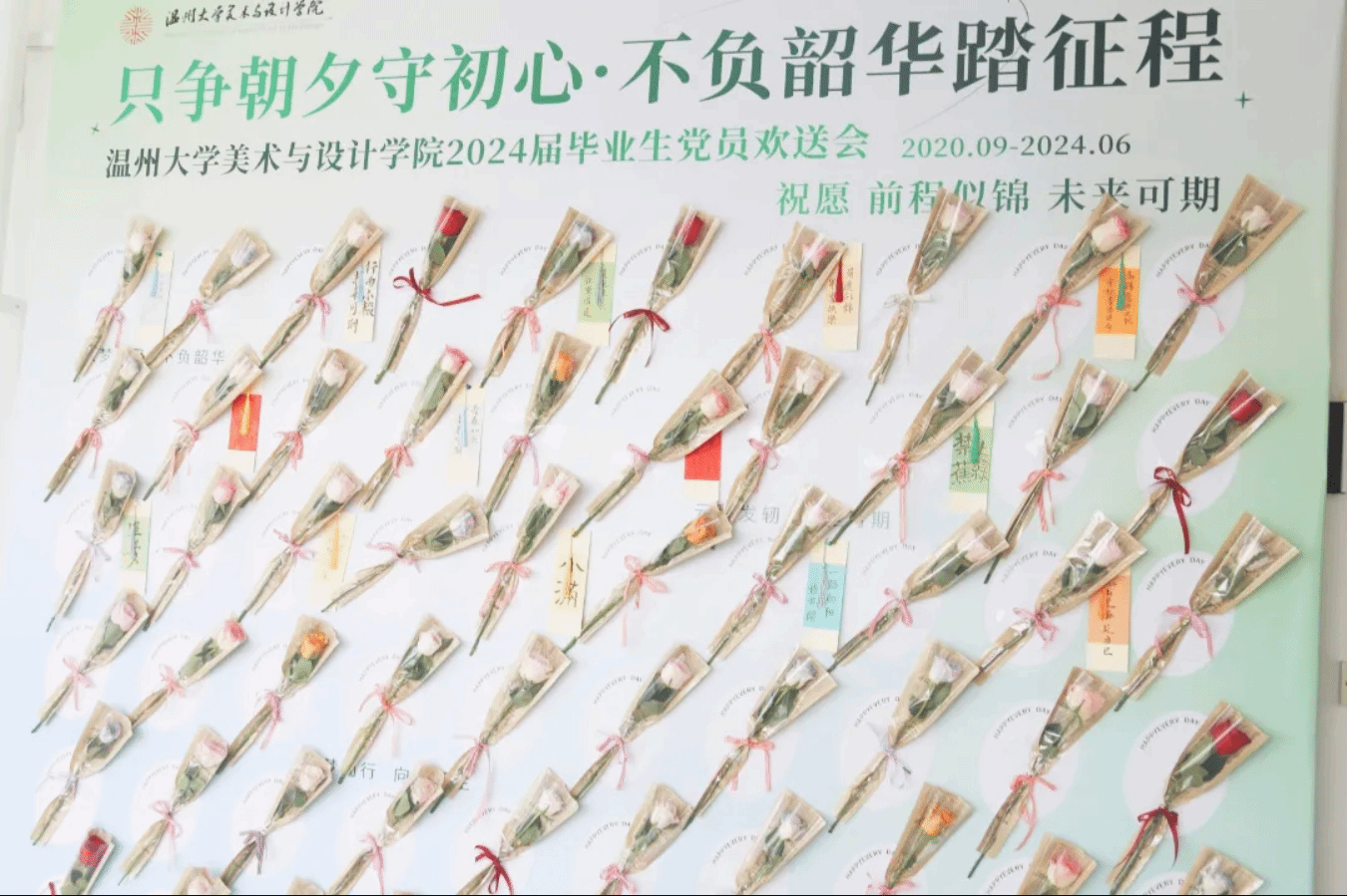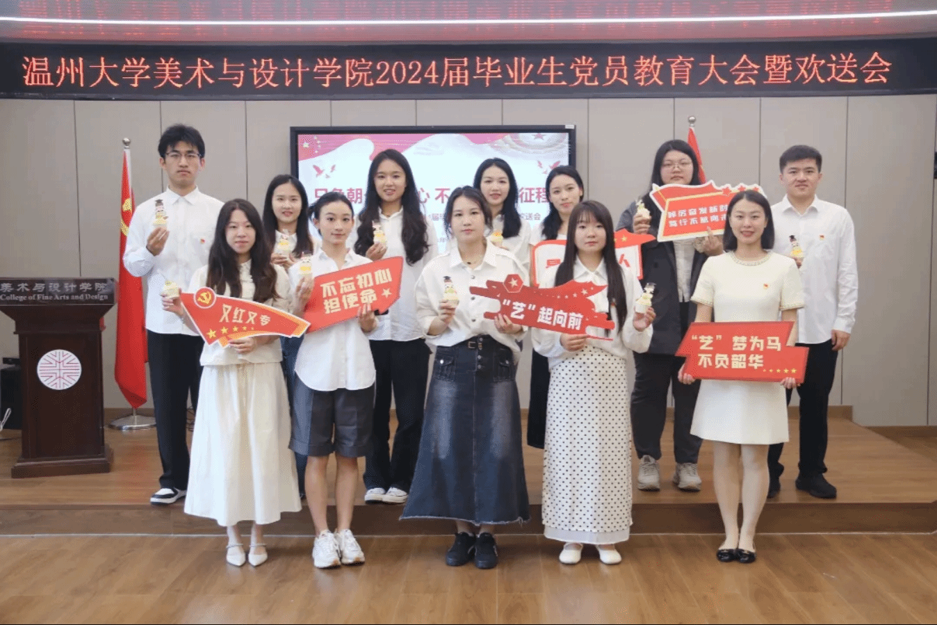 学院党委书记刘青松致辞。他肯定毕业生党员们在大学期间的担当与奉献,并提出“六个牢记”以鼓励同志们继续奋楫笃行,臻于至善。首先,要牢记党员身份,发挥模范作用;第二,牢记温州古城文化,传承“四千精神”;第三,牢记温州大学校训,坚定理想信念;第四,牢记美院人同窗情谊与院训,厚德自律,笃行不怠;第五,牢记党员红线,增强自律防范意识,遵守各项红线规定;此外,还要了解就业陷阱,做到“五防三要”。最后,刘书记祝愿所有毕业生党员在未来道路上稳步前行,迎接新时代的挑战。
