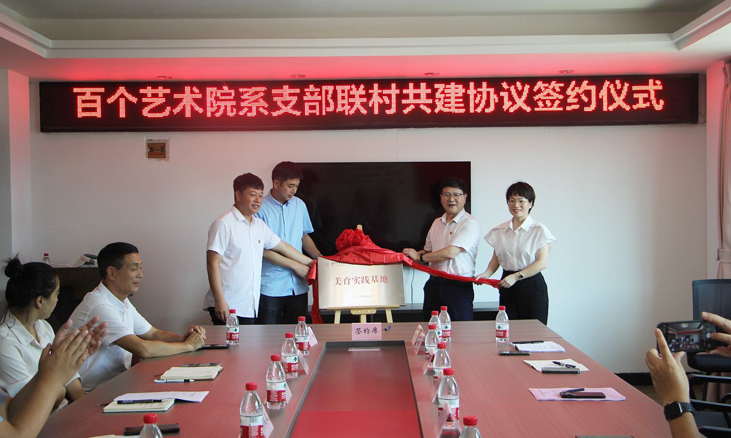 禁忌书屋 党委书记刘青松、禁忌书屋 党委副书记叶如芳与元觉街道人大工委主任叶生杰、沙角村支部书记庄恭论共同为“美育实践基地”揭牌,预示着沙角村将成为学院师生艺术创作与社会实践的重要平台。禁忌书屋 副院长、教工第二党支部书记胡文超与沙角村书记庄恭论共同签署“百个艺术院系支部联村共建协议书”,标志着双方合作正式进入实质性阶段。