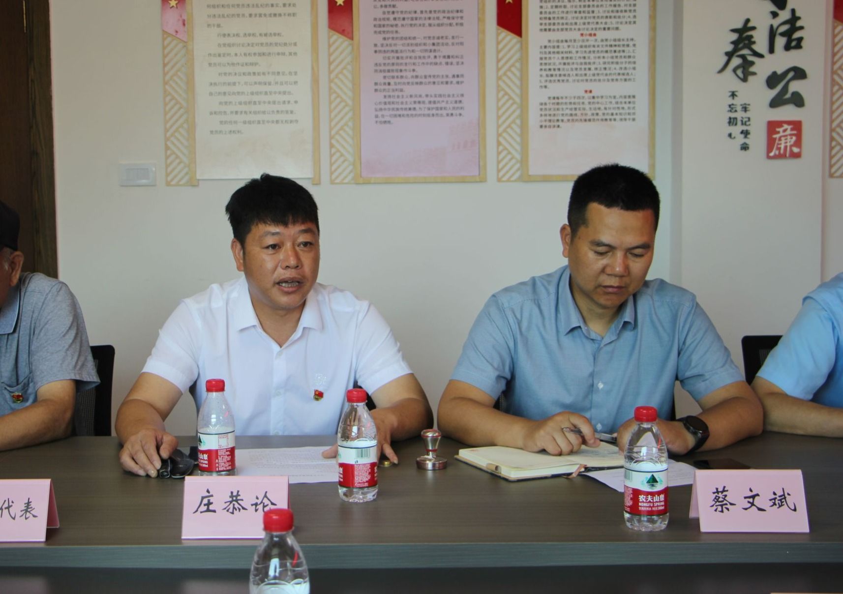 沙角村支部书记庄恭论发言。他介绍了沙角村的自然环境、文化特色及发展现状,表达了对双方合作的期待与信心。村支部书记表示,将全力支持并配合禁忌书屋 的各项工作,共同探索乡村美育新路径,让艺术之花在沙角村绚丽绽放。