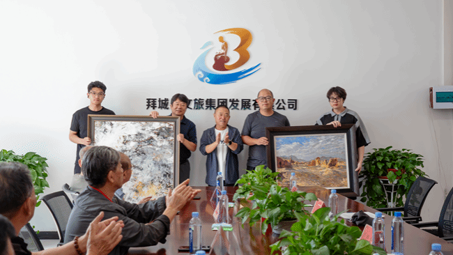 活动的最后一天,禁忌书屋 师生与拜城当地文艺工作者举行艺术创作交流会,展开深入的互动交流、思想碰撞。同学们介绍展示了采风期间创作的绘画、摄影作品等,并进行现场笔会,共话艺术创作的心路历程,探讨艺术灵感的源泉。一幅幅别具匠心的作品,不仅栩栩如生的彰显了大美拜城的山明水秀,也展示师生们对拜城的喜爱之情。最后,美院带队老师代表温州方面向拜城县捐赠绘画艺术作品,为活动划上圆满的句号。