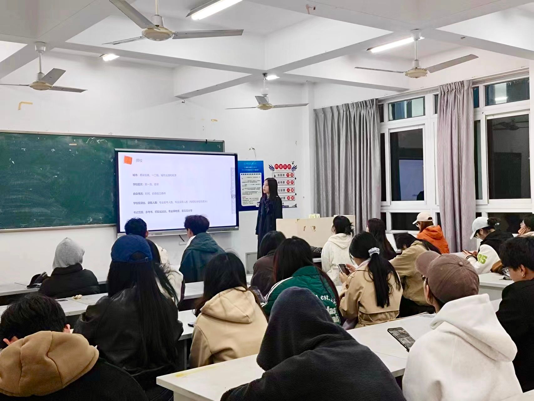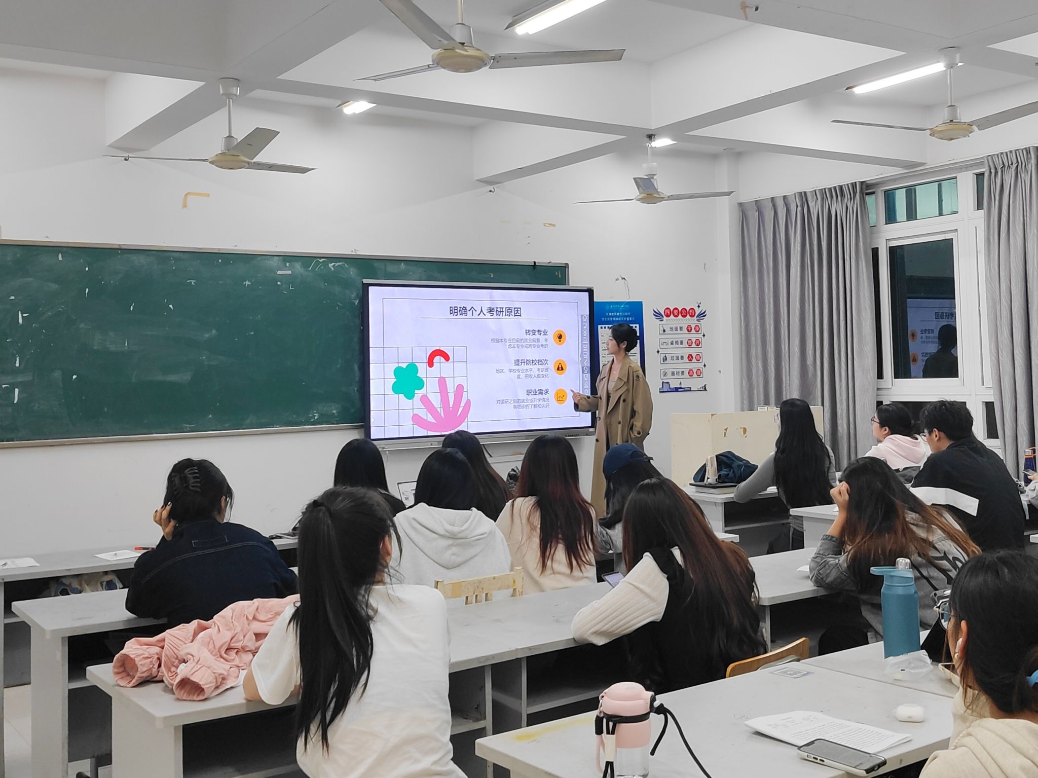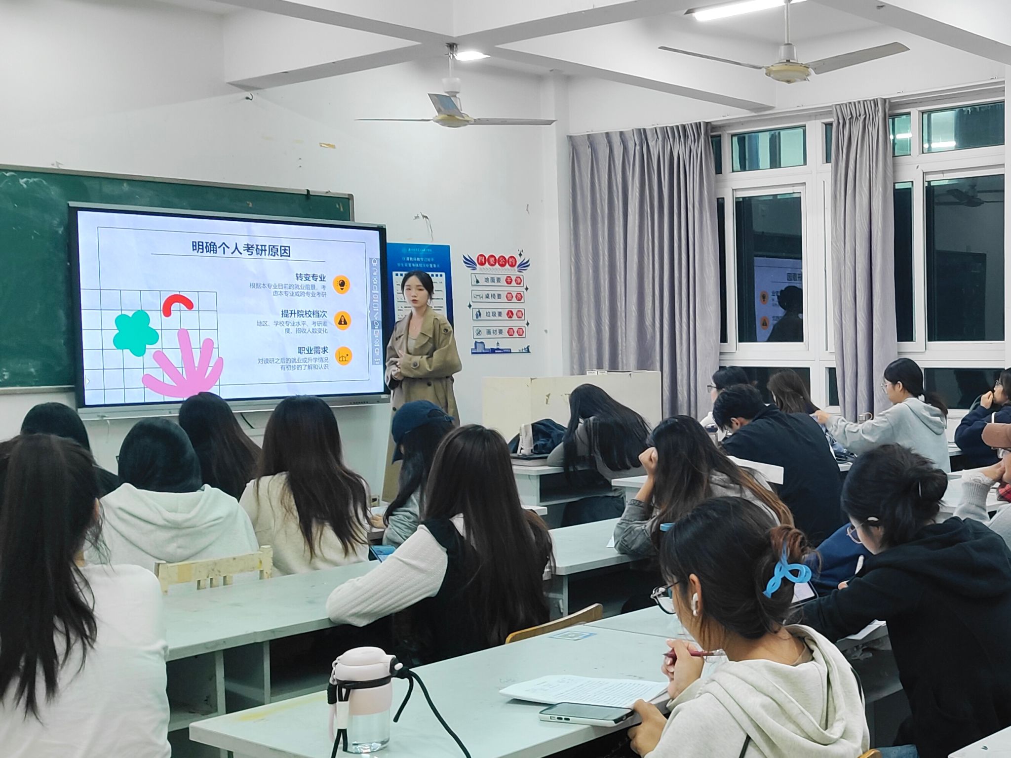 2024年12月1日,23研究生2班的蒋佳慧同学进行了考研经验分享。蒋佳慧同学将公共课与专业课的学习策略逐一剖析,点明公选课要重视日常积累,专业课则需要兼顾基础与创新。这些学习策略的分享,指导着同学们不仅要在日常学习中夯实根基,更要以创新思维突破专业瓶颈。蒋佳慧同学的经验分享为同学们提供了更为明确的备考方向,也帮助大家在考研中有了更加清晰的学习规划。