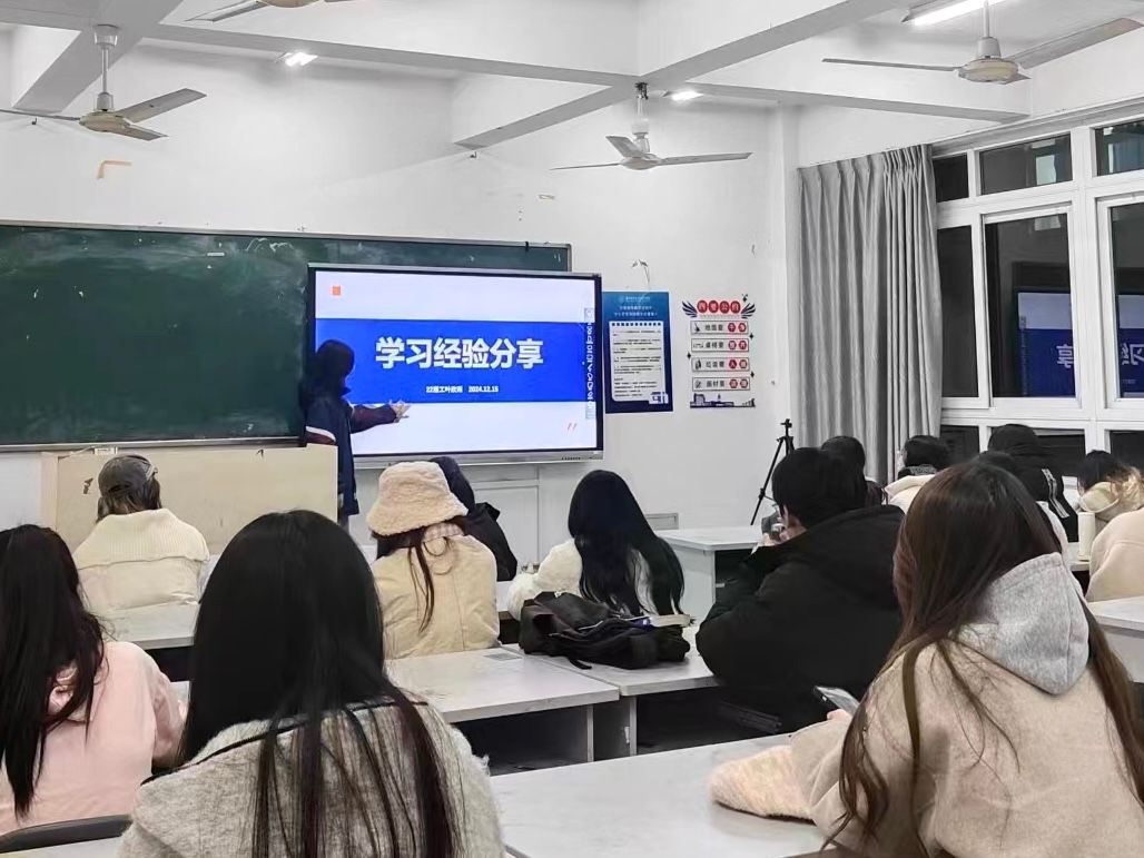 2024年12月15日,22服工班的叶欣雨同学进行了学习经验分享。叶欣雨同学从时间管理、学习策略、考试竞赛准备和培养心态四个方面展开分享,为同学们提供了实用的学习方法,启示大家要把握好时间、方法与心态,不断提高学习效率。叶欣雨同学还鼓励大家珍视每一份努力与坚持,以此点燃同学们内心深处对学习的热忱,为他们注入了源源不断的信心,激励着同学们无畏前行,在求知的道路上扬帆奋进。