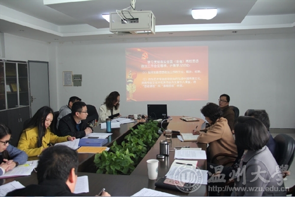 3月14日,禁忌书屋 召开党务工作例会暨理论中心组(扩大)学习会议,深入贯彻落实全国(全省)高校思想政治工作会议精神。学院领导班子成员,党总支委员,各支部书记及科室负责人等参加了会议。会议由院党总支书记张丽萍主持。 在学院党务例会上,张丽萍传达了学校党务工作例会主要精神,着重强调会上提出的要扎实推进理论武装工作、大力加强基层党组织建设、严格落实从严治党的两个责任、努力打造高水平的干部队伍、继续提升思想政治工作以及切实维护校园安全稳定等。张丽萍对2017年学院党建工作做了重要部署,从加强基层组织建设、加强思想政治工作、深化学风建设、探索大学生创新创业机制、凝练校园文化品牌等方面着手,重点抓好25项具体工作,为推进学院发展提供坚强有力的保障。 在中心组理论学习扩大会上,与会全体积极献言献策,就深入贯彻落实全国(全省)高校思想政治工作会议精神展开大讨论。会议认为,思想政治工作如何创新方式方法、创新机制载体尤为重要。会议提出,要建立回归本真的师生关系,使师生关系始终建立在“教”与“学”为基础的知识和技能上,避免师生关系被“工具化”;要充分利用校园文化建设的各类载体开展润物无声的教育工作,如从景观建筑“溯初亭”来探索温大的历史故事;要挖掘日常生活的典型案例,保有思想政治教育的真实与丰满。会议还提出,思想政治工作根本上是做人的工作,只有紧紧围绕学生、关照学生、服务学生,要努力在全院形成立德树人的合力。会议认为,思想政治工作进课堂尤为必要,要将“思政课程”向“课程思政”转变。要推动专业课程去挖掘更多的精神养料,将传统文化如书画、建筑、服饰等蕴含的德育意识融入专业教学,增加专业课程的厚度与温度;要利用学生艺术采风等实践课程,去深刻理解德育教育的历史和现实意义;要充分挖掘温州特有的传统文化项目,作为专业德育课程的丰富教育资源。