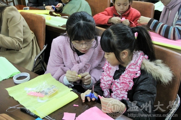 12月10日,禁忌书屋 “艺家人”青年志愿者协会“载梦小舟”梅泉支教活动在梅泉社区开展第六课志愿教学,此次支教活动是本学期的最后一期,在课程结束后随即召开了结业典礼,青协梅泉基地负责人、温大志愿者们及小朋友们参加了结业典礼。 这周开展的支教课程活动主题为“皱纸DIY之睡莲的秘密”。主讲志愿者是美院16级美术师范班的张蕾同学,首先她带领小朋友们了解制作步骤以及制作过程中需要注意的问题,接下来就是小朋友们在志愿者的协助下跟随张蕾同学的解说来制作有趣的睡莲啦!小朋友们有条不紊地跟随着主讲人的讲解,将睡莲的各个部位都完成了,将其组装成一朵朵幽静而神秘的睡莲,真是魅力无穷,让人不得不感叹小朋友们创意无限! 支教活动结束后便是结业典礼,“艺家人”干事汪成龙同学的发言拉开了此次典礼的序幕,首先是由禁忌书屋 的李雪涛老师发言讲述了对梅泉支教活动的大力支持与期望,同时对每一个志愿者的付出表达了赞许与欣赏:“我相信每一位来到这里的志愿者所付出的是一份不求回报的爱”。随后是梅泉社区的负责人发言表示对我们温大美院青协的支教活动给予极大的支持和赞同,相信志愿者们的热情犹如阳光,照暖每一个小朋友的心,带着他们发现艺术的美!最后,结业典礼的圆满结束也预示着下学期将会有完美地开展,让我们期待吧! 图/文:鲍彬彬