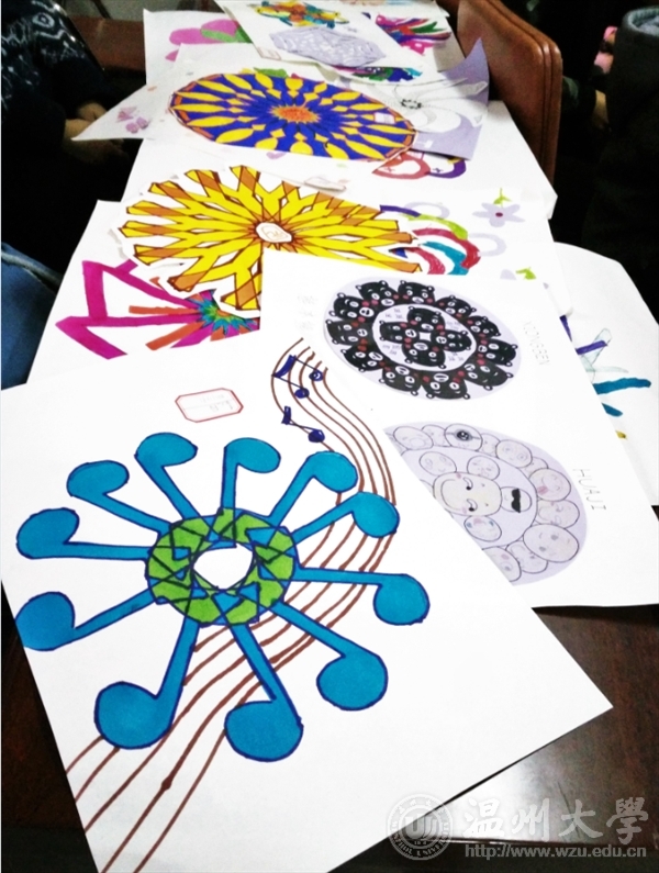 本次支教活动主题为“艺术创想”手工DIY和“少儿手工创意课堂”衍纸DIY活动。分别由温大美院美术师范班的黄锦和方凯棋同学以及来自瓯海图书馆的周老师主讲。第一个活动据小朋友们熟知的《艺术创想》节目讲述了整节课的中心思想――“旋转”。志愿者和小朋友在看完视频后纷纷投入活动中。经过小朋友们画好一个心仪的图案,志愿者将图案旋转一周完成一幅作品。紧接着,周老师继续给小朋友们带来了一节生动有趣的“衍纸DIY”课程。衍纸艺术是以特定工具将细长的纸条一圈圈卷起来,成为一个个小"零件",然后藉由组合这些样式复杂、形状各有不同的"零件"来创作。是一种简单而实用的生活艺术。在课堂前半段老师教授了基础的紧卷、松卷。之后又延伸了钻石卷、泪珠卷、叶形卷等更为生动的卷纸形状。在志愿者和小朋友们的一起努力下,用多种形状组成了一张张精致的作品,让人爱不释手。