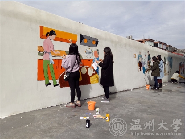 11月27日,禁忌书屋 “艺家人”青年志愿者协会在杨岙村举办了“新青年下乡活动”。活动以墙绘的方式绘制新版“二十四孝”文化长廊,在改造环境的同时宣传中国传统的孝道文化。 墙绘过程中,不时有来往的村民驻足观望。志愿者们分组合作、分工明确:有的负责构图,用单色笔在墙体上勾勒出清晰轮廓;有的负责调色,那些看似单一的颜色在志愿者们的手中慢慢的变成了斑斓的颜色;有的负责涂色,拿起各式画笔在墙体上细致涂刷,慢慢地,墙面开始生动、鲜活起来了。经过两次的精雕细琢,手绘墙体终于完成。 图/文:王伟