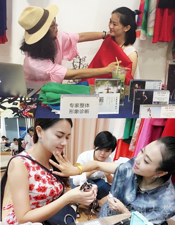 亮点三:个人与团队形象诊断。专家现场形象诊断受市民欢迎。坐诊专家是学院服装专业教师代表金晨怡和叶茜,她们均是国家注册形象管理专家,国际CIA形象协会专家。