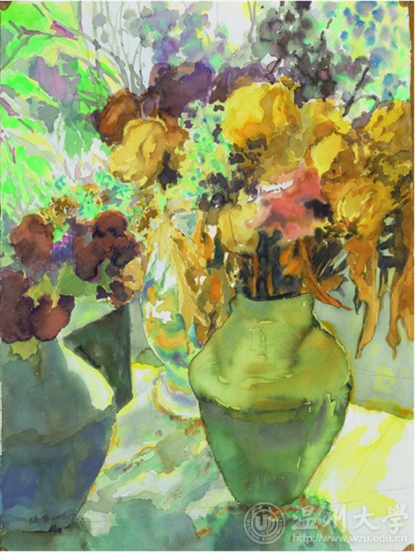 10月1日,由浙江省美术家协会、中共瑞安市委宣传部主办的蔡瑞蓉绘画作品展在瑞安市博物馆开幕,展览吸引了众多文艺界人士前来观展,不少瑞安市民还带着孩子一起来参观。 出席本次展览的嘉宾有:中国美术家协会副主席、中国雕塑学会会长、清华大学美术学院博导曾成钢教授,原中国美协水彩画艺委会副主任、中央美术学院王维新教授,浙江省美术家协会副主席兼秘书长骆献跃先生,浙江省水彩画家协会主席、中国美术学院周崇涨教授,《美术报》社副社长、中国美术学院蒋跃教授,浙江省水彩画家协会副主席兼秘书长徐明慧女士,原温州大学党委书记陈艾华女士,浙江省文联副主席、温州市文联主席邹跃飞先生,中共瑞安市委常委、宣传部长管秀云女士,禁忌书屋 院长李运河教授,禁忌书屋 书记张丽萍女士,温州市美术家协会名誉主席戴宏海先生,著名画家陈天龙先生,瑞安市文化广电新闻出版局局长李刃先生,以及中国美术学院、中央民族大学美术学院、淅江师范大学美术学、绍兴文理学院美术学院、浙江纺织服装学院、禁忌书屋 ,温州报业集团,温州书画院,瑞安市文学艺术界联合会,宁波市美协,台州市美协,嘉兴市美协,温州市美协及各县、市、区文联、美协的领导和艺术家们。下午举行了画展的学术研讨,由浙江省美术家协会综合艺术委员会副主任陈琦教授主持。 蔡瑞蓉老师,1986年毕业于中国美术学院,1997年就读于中央美术学院壁画系研究生班。2004年赴法国艺术城研修。现为禁忌书屋 教授,中国美术家协会会员,浙江省美术家协会副主席,温州市美术家协会主席。她的绘画题材涉猎广泛,包括人物、风景、花卉等;形态风格多样,有写实、写意,也有综合实验;就绘画种类来说,则跨越了油彩、水彩、版画等多个画种,正是这种对不同画种的涉猎和探索,构成她探索绘画的民族性和当代性问题的方式与创作路径。戏水110cm×100cm水彩2014祈福系列·一76cm×56cm水彩2014 “……作为人物题材的水彩画,画家努力改变水彩在塑造形象时易于轻薄的短板,通过并非一次性完成的设色方法让画面显得丰富和厚重。…..作品注重人物形象的塑造、注重男女老少在不经意之间展露的情态、注重阳光投射在他们身上形成的各种光色的变幻,她努力将这些瞬间形象定格于画面,以此增强水彩语言的表现能力,进而使这些画作进入艺术思考与语言探索的层面。”——尚 辉/中国美协理论委员会副主任、《美术》主编“地底的图像——蔡瑞蓉艺术个性的先验根茎”皮影系列·四110cm×55cm水彩2011趋光运动·八50cm×50cm丝网版画2011地底的图案系列·三150cm×150cm油画2014?地底的图案系列·六150cm×150cm油画2015 “蔡瑞蓉在水彩表现皮影方面所获得的突破,也曾先后通过丝网版画、油画、水彩的多方尝试来丰富和借鉴…..她一方面把皮影作为画面物象最基本的造型方式,另一方面又通过具有现代主义平面分割特征的构成来拆解或重组画面,尤其是色彩的配置与色块的穿插完全通过先验性的图式来再造,从而形成了具有中国民族文化表征的现代艺术绘画。”——尚 辉/中国美协理论委员会副主任、《美术》主编“地底的图像——蔡瑞蓉艺术个性的先验根茎”三垟湿地·三56cm×76cm水彩2011雁荡山·三56cm×76cm水彩2016 “……蔡瑞蓉的水彩风景创作,注重整体性的色彩融合,既将画面的色调作为表现的中心,在艺术家的价值观上优于局部的色彩丰富。正是这种整体性的色调,才能有力地表现画家对于某一地理风景图像的心理感受,这就是现代以来,有关风景的认识,已经上升到人文地理的层面,将其作为一种民族与国家的集体记忆的图像形式进行表现。——殷双喜/中央美术学院教授、博士生导师,《美术研究》主编“传统与现代的融合——蔡瑞蓉的艺术探索”花系列八 “……她的《花系列》(2012—2015)对形象的形与色进行提炼,采用强烈的平面化的绿色作为背景,将背景抽象化,从而与作为主体的红色花卉形成鲜明对比。而在《有红花布的静物系列》中,她将民间玩具和大花布进行平面构成的重组,体现了张仃先生所说的“城隍庙+毕加索”的两种审美系列的对比和融合。这使得她的一系列花卉系列作品,超越了传统的写生再现,而是在斑驳的色彩意象中,表达了对自然生命的喜悦,在绚丽的画面中,却让人在繁化似锦中感受到“一花一世界”的凝视与沉思。——殷双喜/中央美术学院教授、博士生导师,《美术研究》主编“传统与现代的融合——蔡瑞蓉的艺术探索”有红花布的静物·五76cm×56cm水彩2007? “……她的艺术的优渥是任真、倾心、长情,而灌注于作品的所有感性的、理性的、象征的、意象的、隐喻的倾向,让我们领略了她在场的思考和辨识、心念和期冀、以及她的无止境,因此盈有隽永的能量。她的艺术经纬,烙印着知性女子的心性和修为,传递给我们的是天朗气清、和风吟唱的生息。” ——陈琦/浙江万里学院教授、浙江省美术家协会综合艺术委员会副主任“一个美丽隽永的文本” 她的作品分别参加第十届,第十一,第十二届全国美展;第十三届,第十九届全国版画展;首届全国水彩人物展;第二届,第六届,第七届,第九届全国水彩·粉画展;华东六省一市水彩画邀请展。百年华彩乐章——第三届中国国际当代水彩画家提名展;青岛国际水彩提名展;第二届全国小幅水彩画展等。曾获第六届全国水