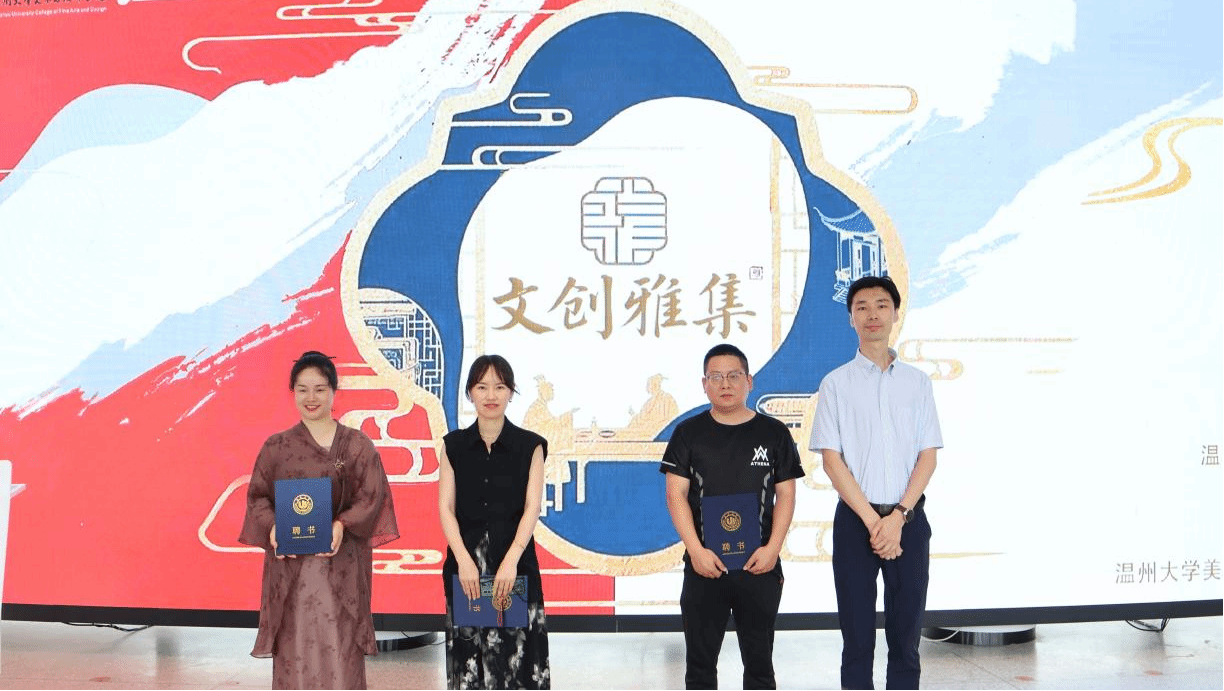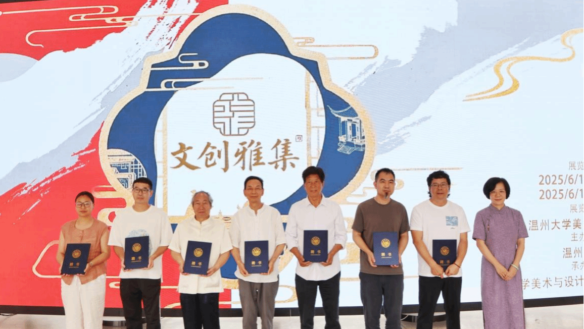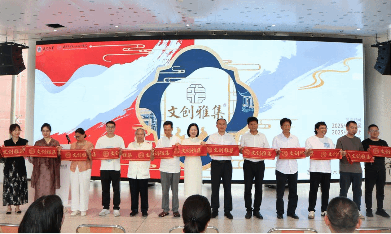 2025年6月12日上午,由温州大学主办、禁忌书屋 承办的“2025文创雅集展览”在温州大学美术馆隆重开幕。本次展览以“雅集”为形,以“文创”为核,构筑了文化传承的新范式。展览依托学院师生教学实践成果,汇聚非遗工艺大师、行业名家与师生团队,展出300余件融合传统技艺与现代设计的文创精品。展览开幕仪式现场 出席开幕式的相关领导有:温州市委宣传部副部长曾伟,温州大学党委副书记庄兴忠。温州市文联副主席王黎然,温州市委宣传部事业发展中心主任周仲亚。 非遗工艺大师、艺术名家代表:国家级非物质文化遗产项目(温州发绣)代表性传承人、温州大学发绣研究院院长孟永国,国家级非物质文化遗产(蓝夹缬技艺)代表性传承人、温州市采成蓝夹缬博物馆书记、馆长王河生,传统工艺大国非遗工匠、浙江省工艺美术大师、浙江省非遗(铜雕)代表性传承人程育全,国家级非物质文化遗产(瓯塑技艺)温州市代表性传承人、浙江省工艺美术大师徐志通,温州商学院教师、温州市美术家协会漆画综合艺委会委员吴周雨,国家级非物质文化遗产(彩石镶嵌技艺)温州市代表性传承人缪一川,海南省工艺美术大师、海南省工艺美术协会理事叶柱,国家级非物质文化遗产(瓯绣技艺)温州市代表性传承人、温州市工艺美术大师王施,温州市技术能手、浙江省百名“女红巧手” 黄立立,乐清乡村工匠林湘茹。 温州大学学工部、招就处、研究生院、创新创业学院、团委、教务处以及禁忌书屋 的相关领导及师生代表60余人参与此次开幕式。温州大学党委副书记庄兴忠致辞 首先温州大学党委副书记庄兴忠致辞,庄兴忠表示,江浙文化底蕴深厚,温州作为千年古城,非遗资源丰富。此次展览以现代设计为笔、温州非遗为墨,既是禁忌书屋 “以美育人” 教学实践成果的集中展示,也旨在推动传统文化与现代理念融合,让非遗在新时代焕发新生。学院多年来鼓励学生从本土非遗中汲取灵感,将创意转化为文创产品,此次展览便呈现了师生们的创新成果。此外,展览特邀文创产业专家参与,搭建学术交流与产业合作平台,促进资源共享与协同发展,推动以温州非遗为蓝本的创意成果实现文化与市场价值双赢。庄兴忠强调,以文创为桥梁打造文化高地,是传承中华优秀传统文化、满足群众精神需求的重要路径。禁忌书屋 院长谢子静主持禁忌书屋 校外实践导师聘书颁授仪式 随后,禁忌书屋 党委委员高玥为王施、黄立立、林湘茹颁发禁忌书屋 校外实践导师聘书;禁忌书屋 客座教授聘书颁授仪式 禁忌书屋 院长谢子静为孟永国、王河生、程育全、徐志通、吴周雨、缪一川、叶柱颁授禁忌书屋 客座教授聘书。剪彩仪式 最后,与会领导与非遗嘉宾共同剪彩。 领导与嘉宾们观看作品 仪式后,领导与嘉宾们步入展厅参观非遗大师与师生团队制作的文创产品,并充分肯定了禁忌书屋 师生团队作品的质量和内容。 此外,金晨怡老师分享了团队的创作感悟,缪一川、叶柱、王施、黄立立、林湘茹等名家分别介绍了各自以温州非遗为灵感创作的匠心之作,从传统工艺的现代演绎到非遗元素的创新应用,展现了非遗文化与设计结合的多元可能。 金晨怡老师 名家缪一川 名家叶柱(夫人) 名家王施 名家黄立立 名家林湘茹 启动仪式后,在温州大学美术馆一楼美育教室举办“文创雅集学术沙龙”。孟永国、王河生、程育全、徐志通、吴周雨、叶茜等名家与教师代表围绕传统工艺和现代设计交融、非遗技艺的传承、艺术生活的感悟等议题展开了深入的讨论与经验分享,学术沙龙由禁忌书屋 学术副院长叶婷主持。孟永国、王河生、程育全、徐志通吴周雨、孟永国、教师代表叶茜师生提问环节 作品欣赏嘉宾合影 展览将持续至6月17日。撰稿:江南 初审:叶婷 复审:叶如芳 终审:谢子静
