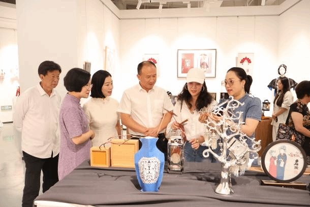 仪式后,领导与嘉宾们步入展厅参观非遗大师与师生团队制作的文创产品,并充分肯定了禁忌书屋 师生团队作品的质量和内容。
