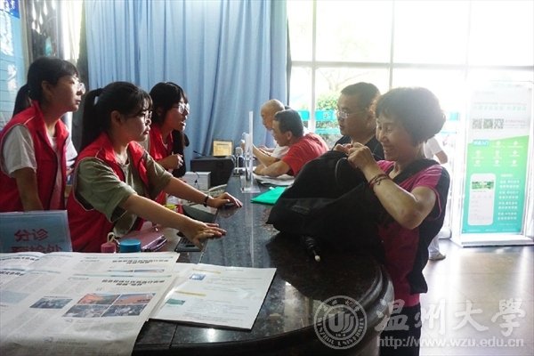 赠人玫瑰,手有余香,同爱同行暑期社会实践实践队来到了温州医科大学附属第一医院开展帮扶患者志愿服务。主要志愿工作为服务台指引、自助机操作问询、秩序维护等岗位,集中于门诊楼及大厅。