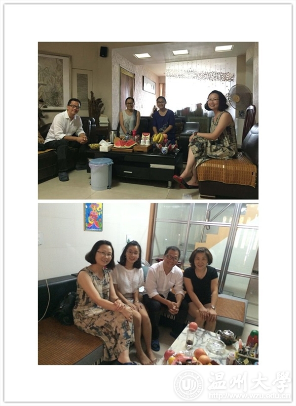 为进一步增进学校教师与学生家庭的沟通联系,加强师德师风建设,倾听家长呼声,了解家长期望,构建学校与家庭、教师与学生齐心共育的育人环境。近日来,禁忌书屋 积极响应学校号召,假期中组织开展学生家访活动。7月17日,学院党总支副书记杨振海携14美本师范班班主任陈菽现老师赴瑞安王昱人、胡淳雅同学家中家访,家访活动得到学生及其家长的热情欢迎。杨书记一行首先来到王昱人同学家中,该学生是这个班的班长,父母均是中学教师,母亲画得一手好画,家中富有浓浓的书香气息,交流中得知其父母都是原温州师范学院的校友,自然对学校有一种特殊的亲切感,老师与家长之间的交流非常融洽温馨。在交流中我们也了解到学生平时在生活中是个懂事孝顺的孩子,会主动与父母探讨交流学习方面的心得,父母与孩子在家庭中会像朋友一样交流与沟通。本次家访交流主要围绕学生的学业规划、考研深造与就业问题展开深入讨论,我们建议并鼓励学生要根据自身的职业生涯规划制定发展方向与具体目标,合理安排时间,学好专业知识,提升各方面素质与能力,无论是考研深造还是工作就业两者并不矛盾,应该可以相辅相成,互相促进的。随后杨书记一行来到胡淳雅同学家中,学生与其母亲接待了老师一行,交流中其母亲一再夸奖孩子非常懂事、生活自立、社会适应与交往能力强,从小到大都不用父母为其操心,在学习与生活上均有自己明确的理想与目标,能够主动合理的安排时间与精力去追求。该学生绘画专业基础好,在暑期除了安排自身专业学习之外也主动参与社会兼职锻炼,以便为今后的顺利就业打下更好的基础。交流中我们也鼓励学生在假期参与社会锻炼,但要注意防暑与人身安全。通过此次学生家访,我们老师与学生家长进行了亲切的交流与沟通,也听到更多我们在教书育人方面的建议与期盼,我们学校将会与学生家长形成教育合力,有针对性地加以培养与帮扶,为学生的成长成才共同努力。