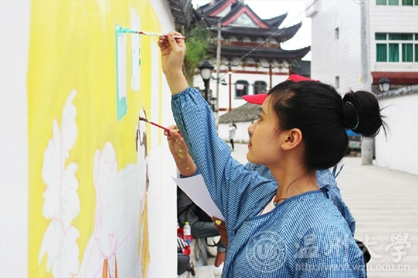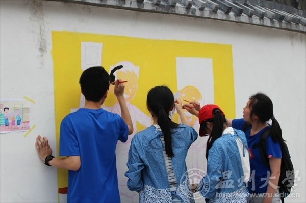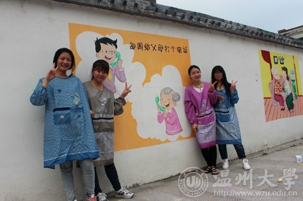 为了进一步响应与落实市委“新青年下乡”主题精神,弘扬传统孝道美德,美院志愿者们携手教师教育学院的“小老师们”一同参加了“乐清市绘二十四孝墙绘”的活动。12:30大家兴致高涨的集合于温州大学东大门,每个人都很期待这次的活动。经过了一个多小时的坎坷的旅途,终于到达了目的地。在简单的参观完后,每组都得到了属于自己的“任务墙”。本次墙绘的主题主要是围绕一个“孝”字,志愿者们通过画笔和色彩,将自己想要传达的信念慢慢幻化成美丽的图像。很快我们的活动就出现了成效,小幅作品精美绝伦,大幅作品也控制的游刃有余,凸显了禁忌书屋 与教师教育学院学生高超的美学素养,同时也展示了我温大优秀的学子风范。本次活动由两个学院联合举行,不仅仅促进了两个学院之间的感情,更是对我们自身能力的一种锻炼和培养。在这样一个特殊的纪念日,我们运用专业知识与技能去服务社会,真正做到专业与实践相结合,使我们融入到社会中去,为社会奉献出自己的一份力量。文:“艺家人”青年志愿者协会图:“艺家人”青年志愿者协会