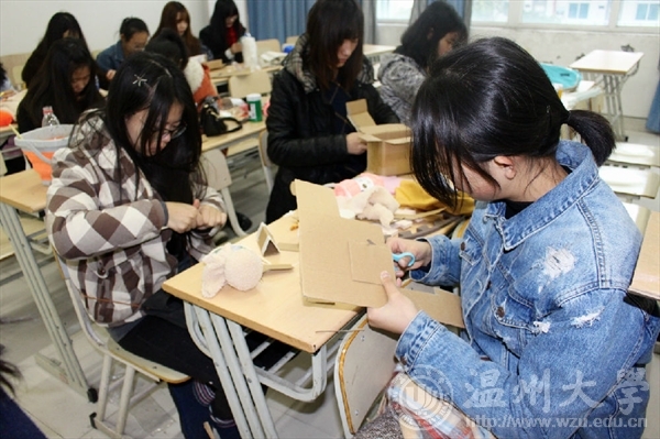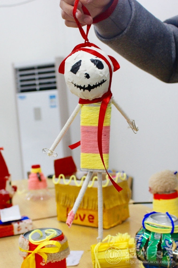 2点整,活动准时在美院2B3001展开。首先由本次活动的“艺家人”青协志愿者负责人上台致活动开讲词,随后就是志愿者的创作时间。作为禁忌书屋 的学生,动手能力自然是十分出色的。活动室里,志愿者领了物品后手上的活动就一直没有停歇,创作了一个又一个可爱的冬日小饰品。一件件看似毫无用处的废旧物品经过志愿者的改造变成了令人爱不释手的精美饰品,有的志愿者利用废旧的饮料瓶做了圣诞老人,有的做了风铃,有的做了小房子……志愿者们出色的创造力,很好的展现了美院学子的风采。