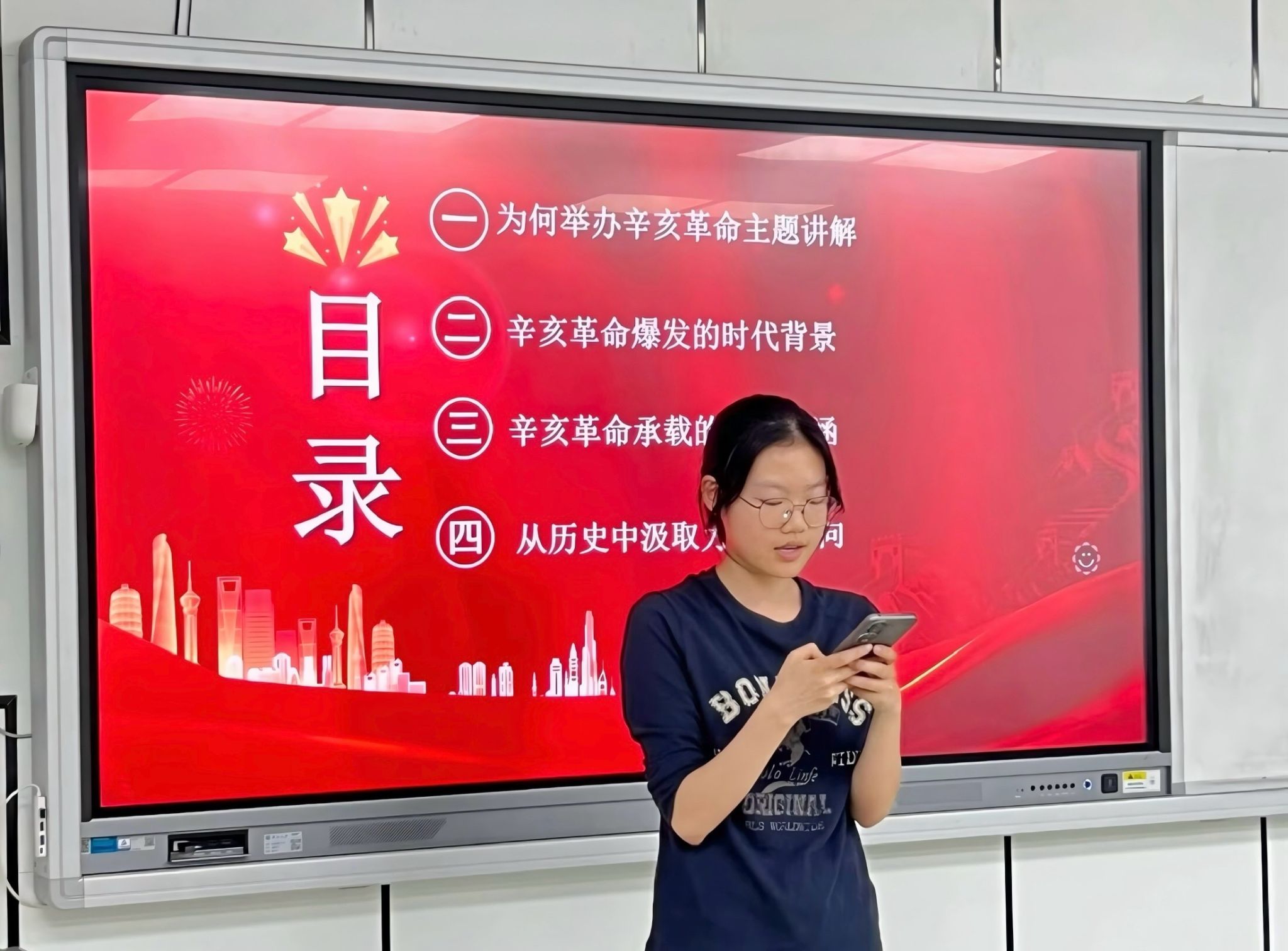 活动伊始,主持人围绕“百年辛亥薪火相传”展开,从孙中山先生于檀香山创立兴中会的历史背景引入,聚焦辛亥革命结束中国两千多年的君主专制制度的历史意义为中轴,鼓励同学们深刻理解辛亥精神的时代内涵,将个人理想融入国家发展与民族复兴的伟大征程,以青春之我、奋斗之我,为强国建设贡献力量。