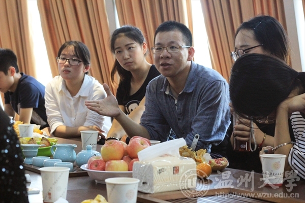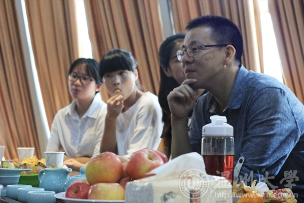 2015年9月24日下午1时在禁忌书屋 的视野空间交流室内,艺路导航第六期师生交流会如期举行,本期特邀禁忌书屋 黄容海老师。 人生如茶。一苦,二涩,三而甜。沐浴着茶叶所散发出的醇香,在一片氤氲中大家便开始了热络的畅谈。黄容海老师亲切的问候,诙谐的语言,带来这场无拘束的近距离座谈会。 活动开始黄容海老师首先询问了同学们生活和学习方面现状的了解,当聊到近期作业过多这个问题时,学生们都愁眉苦脸,黄容海老师首先提到了“主动学习”,黄老师说“作业虽然数量多,然而质量和态度才是更为重要的,我们应该要学会转换性思维,只要你积极主动去做,认真用心去体会,必然会感受作业带给你的收获。”并强调到时间规划的重要性,推荐大家每天给自己一个规定的时间来完成作业,花多少时间做事是由自己决定的,不要逼着自己熬通宵,同时,并举了一个例子,一个员工熬夜加班在半夜两点给老板发文件,第二天却换来老板一顿臭骂。说明认真并不是你的通行证,还需要效率和规划。老师的话如一记警钟敲响了在场的同学们。之后针对专业的问题,一场简单的交流似乎以无法满足大家的疑问,同学便直接回教室搬出了展示模型,一场直观实践的现场教学和专业指导便开始了,黄老师对同学进行了耐心的解答,在座的同学们都受益匪浅。如山涧的流水娓娓道来,意味深涵,又像是大海里的指向标引领者同学们走向更美好的明天。 时间就是如此,你不曾觉得拥有却悄然离去,不知不觉已到了尾声,收获了信心,收获了温暖。在一片欢声笑语中,座谈会也到达了尾声。同学们在这轻松愉快的氛围中恋恋不舍地离去。短短几杯茶的时间,每位同学的心仿佛被黄老师的温声细语擦去了所有尘埃,愈发干净透明,也如同被清茶洗涤,找到并确立了自己的方向。此次座谈会就圆满结束了,相信黄老的劝导和鼓励,能使同学们以积极的态度展望未来。 摄影:黄磊 通讯:周瑶
