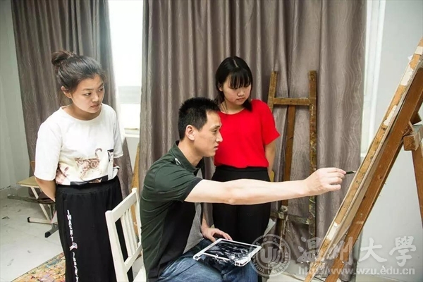诲人不倦。对学子的悉心教诲,细心指导,在课堂上,说他是我们的老师,不如说他是我们朋友,他总是能用幽默风趣的教学方法激发学生对绘画的乐趣,他也会把课堂融入大自然,热爱摄影的他会带着心爱的相机和学生去捕捉自然的美好。陈旭海老师褪去了高贵艺术成就的外衣,用画笔在勾画精彩画卷的同时,也为温大美院勾画出一批批莘莘学子。