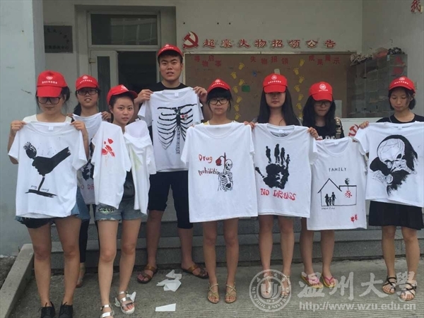 6月7日下午,禁忌书屋 “艺家人”青年志愿者协会与温州市禁毒所在超豪学区进行“乐行学子梦”之世界禁毒日“禁毒于行,绘衣铭记”公益活动。志愿者们认真地用画笔在白T恤上绘制具有深度思考力的禁毒图样,活动氛围吸引一些路过的大学生纷纷驻足观看,有不少同学加入禁毒日活动中来要求一起绘画合影。同学们在白衬衫上加上自己对禁毒的感言和感悟,并且与自己的作品合影。这次活动激发了大学生用自己的专业知识向社会传播正能量关,增强了大学生的社会责任感。 拍摄者:张豪 通讯者:祝怡宁