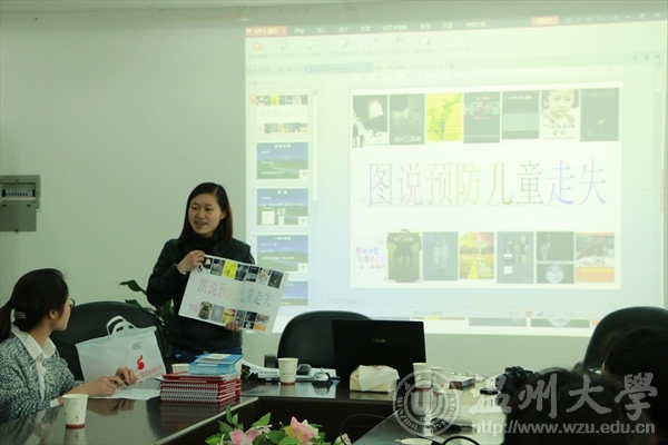 为了让禁忌书屋 学生更深入的了解走失儿童问题,4月8日下午2点半,禁忌书屋 “艺家人”青年志愿者特邀瑞安市星儿爱心服务社会中心负责人鲍颖老师、副社长孙钰珉老师及禁忌书屋 辅导员李艳燕老师,在美院2B216举行了“绘情于笔,寻找迷失儿童”交流会。