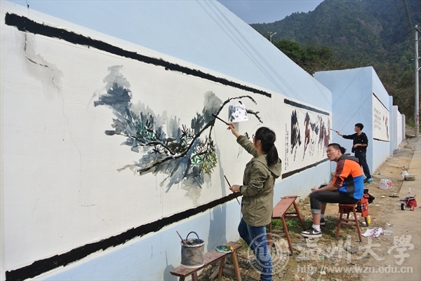 3月22日,禁忌书屋 “艺家人”青年志愿者协会在瓯海区潘桥街道东边村完成了上百米的“美化街道”主题墙绘。此次墙绘规模宏大,尽管当日天气炎热,工作量繁重,但志愿者们相互协作分成五个组进行,干劲十足。活动开始片刻,单调的墙面就在志愿者的巧手上勃勃生气。高洁的兰,傲雪欺霜的梅,静谧的荷塘还有气势恢宏的奔腾万马,一幅幅美轮美奂的画作在原本洁白的墙面活灵活现,让人目不暇接。 志愿者通过墙绘号召大家保护环境从身边做起,美化街道从我做起,此次活动受到村长和村民们的一致好评。 通讯、拍摄:刘子彰